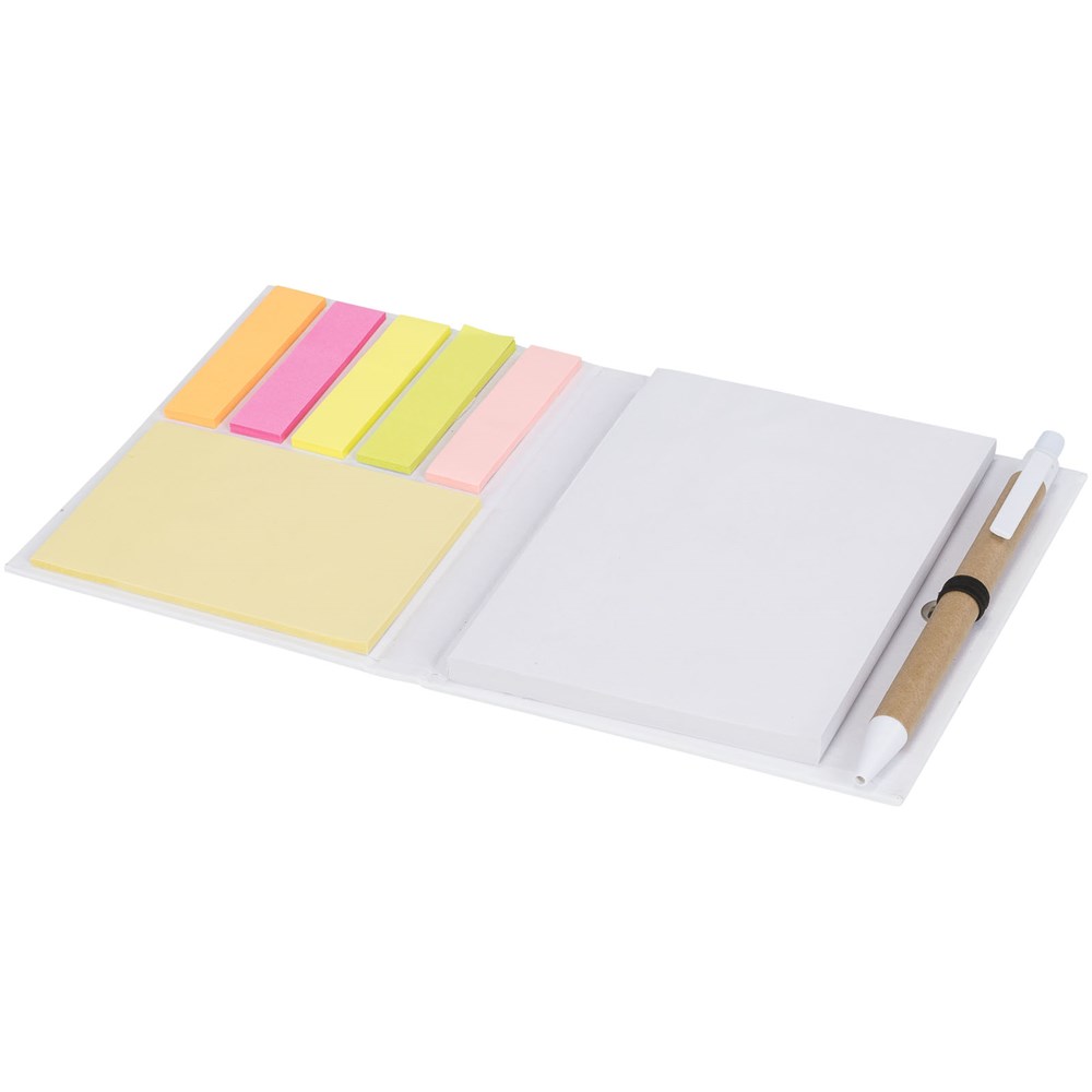 Het Colours-combopad met pen is handig voor elk bureau of kantoor en bevat een kladblok, pagina tags, sticky notes en een bijpassende balpen. Ideaal om op een bureau te leggen of om te gebruiken wanneer je op pad bent.