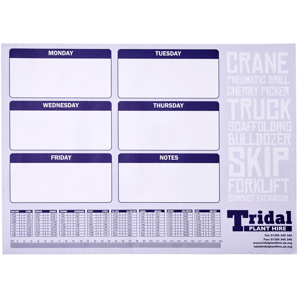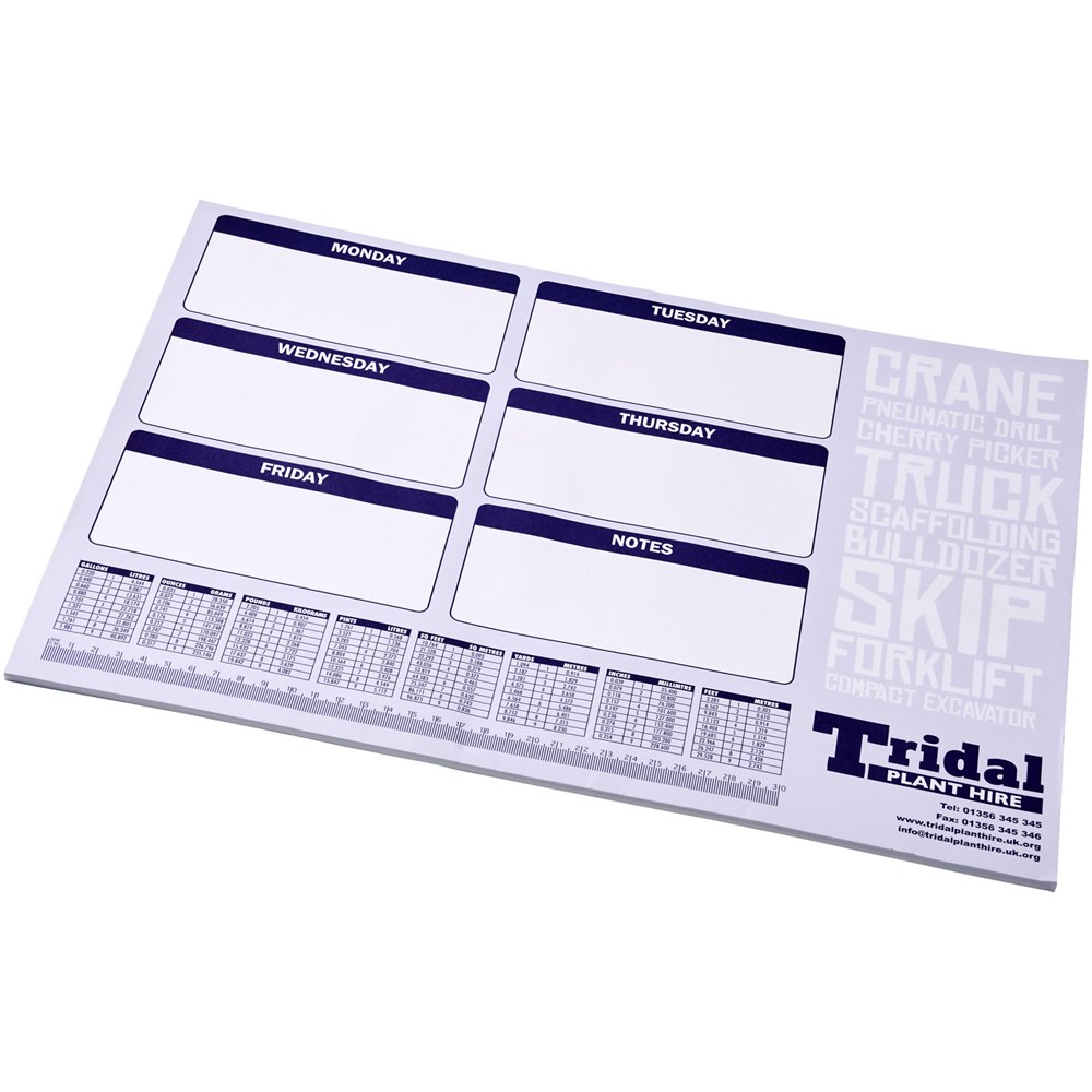 Desk-Mate® A2 kladblok. Wit A2 Desk-Mate® kladblok. Bevat 25, 50 of 100 bladen (80 g/m2) blanco papier. Decoratie mogelijk op elk blad. Afmetingen blad: 594x420mm. Papier, karton.