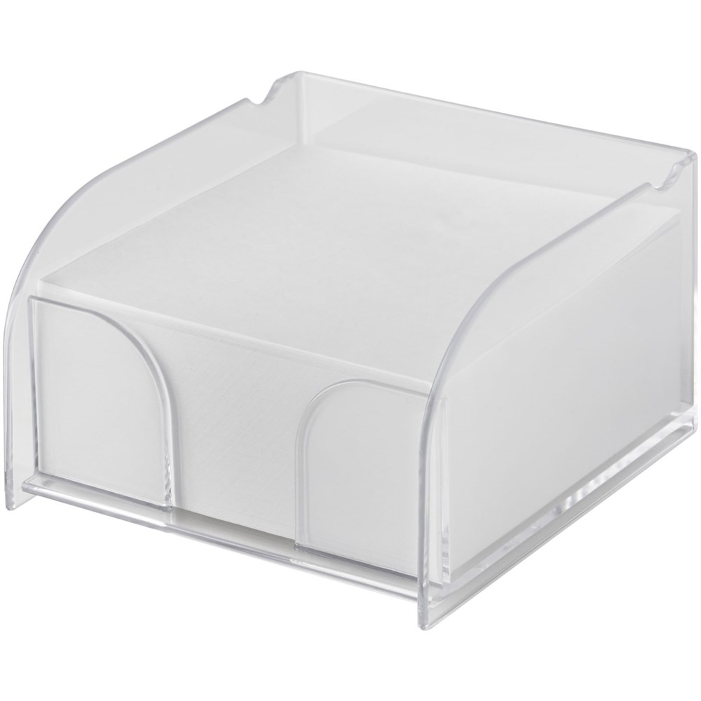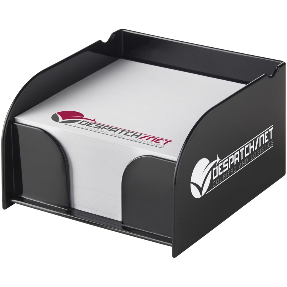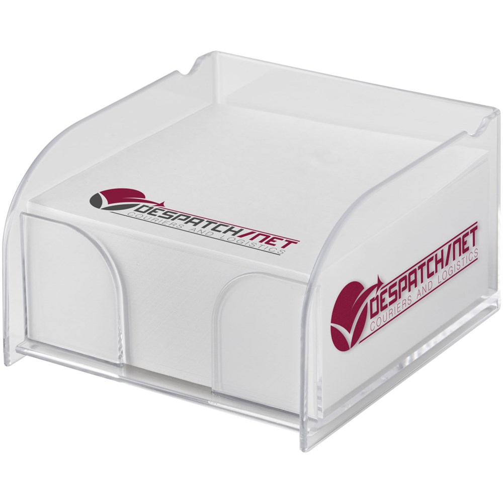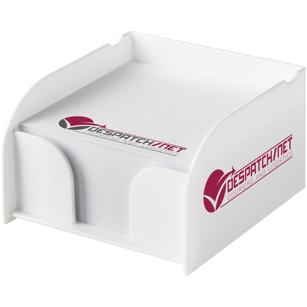 Vessel memoblok, inzetstuk en memopapier. Plastic houder voor vessel memoblok. Bevat ongeveer 400 bladen (80g/m2) blanco papier. Digitale druk of tampondruk mogelijk op alle drie zijden van de plastic houder. Decoratie ook mogelijk op elk blad. Papier, GGPS-plastic.