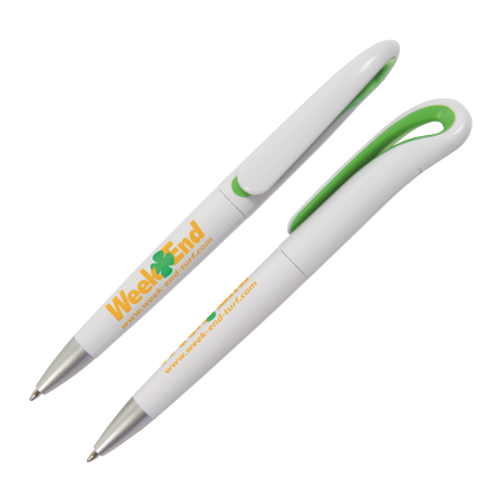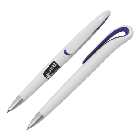 VICTORIA kunststof balpen Peekay met gestyleerde clip, clip in diverse kleuren leverbaar, deze prachtige pen wordt geleverd met blauw schrijvende langschrijfvulling!