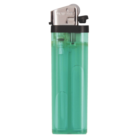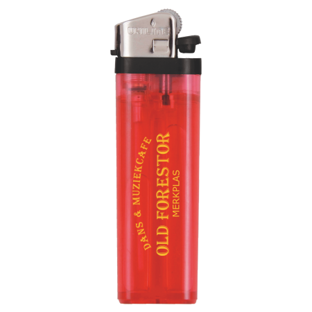 Aansteker M3L transparant, 25 x 80 x 10 mm, met kinderbeveiliging en ISO gecertificeerd. Standaard komt de bedrukkingaan 1 zijde, aan 2 zijden is tegen een meerprijs