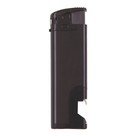 Elektronische aansteker flesopener, navulbaar, 25 x 80 x 11 mm. met kinderbeveiliging en ISO gecertificeerd. Standaard komt de bedrukking aan 1 zijde, aan 2 zijden is tegen een meerprijs.