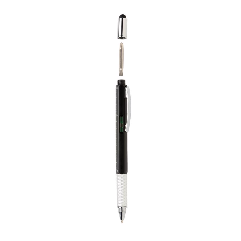 Multifunctionele pen van ABS-materiaal met liniaal, 7cm waterpas, schroevendraaier, stylustip en balpen (blauwschrijvend, tot 400 meter).