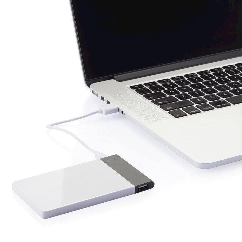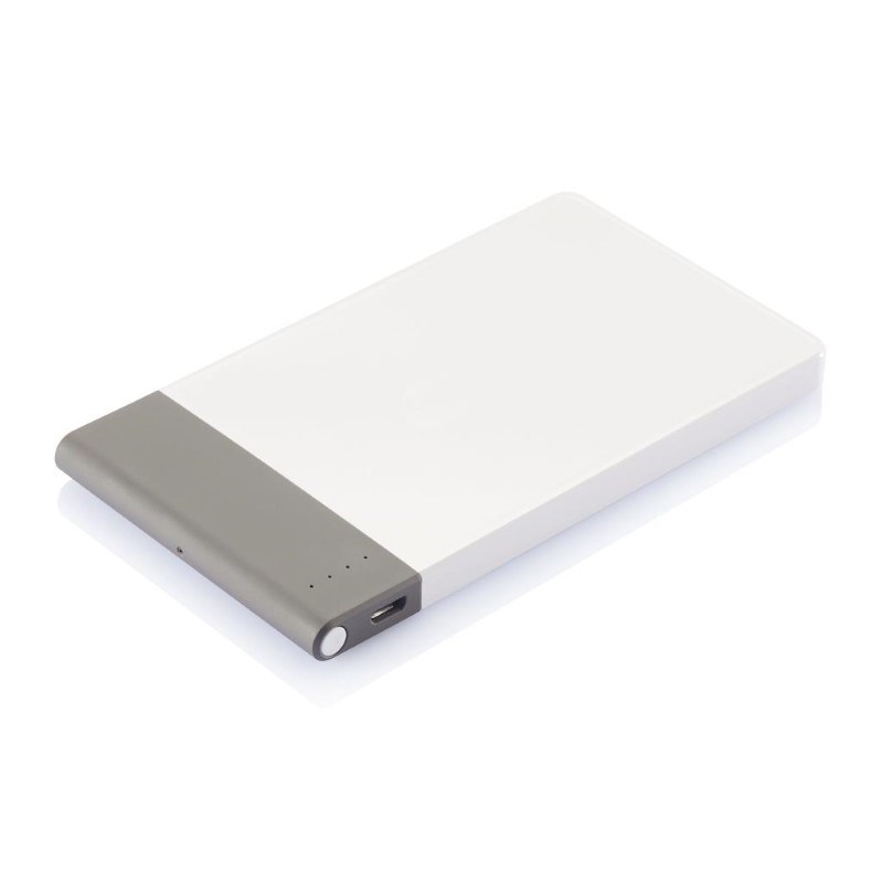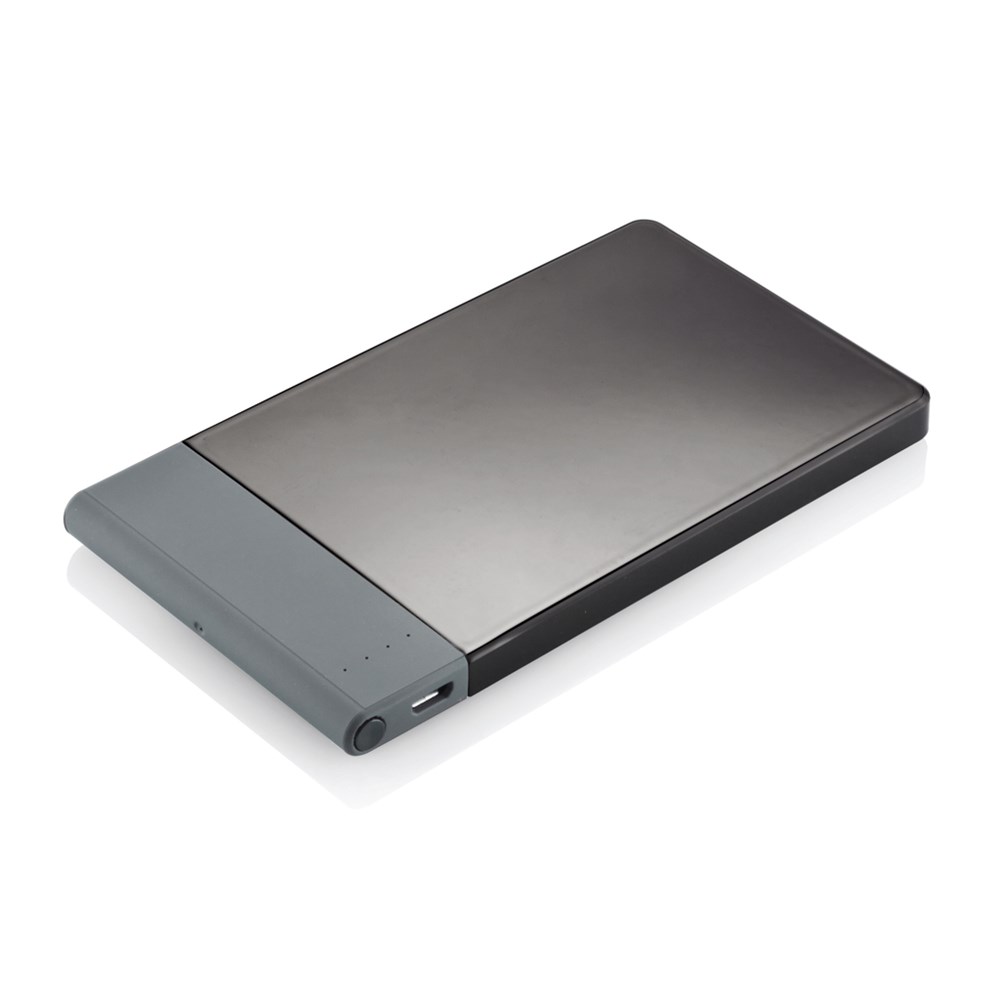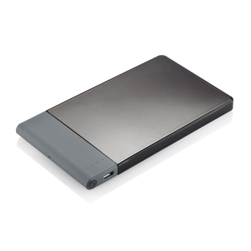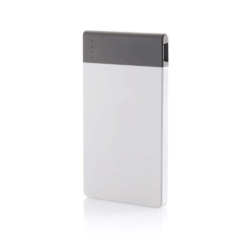 4.600 mAH ultradunne powerbank met hoge kwaliteit lithium polymeer batterij. Inclusief aan/uit knop en batterij capaciteit indicator. Output 5V/2.1A, input 5V/1A. Verpakt in transparente gift box.