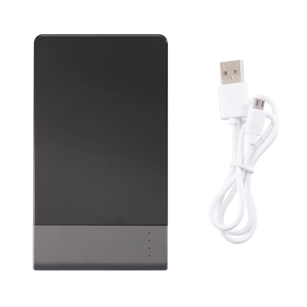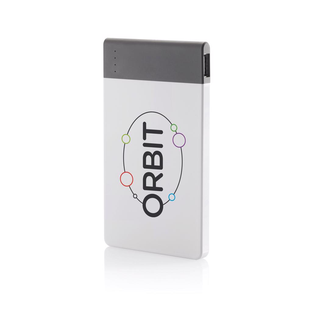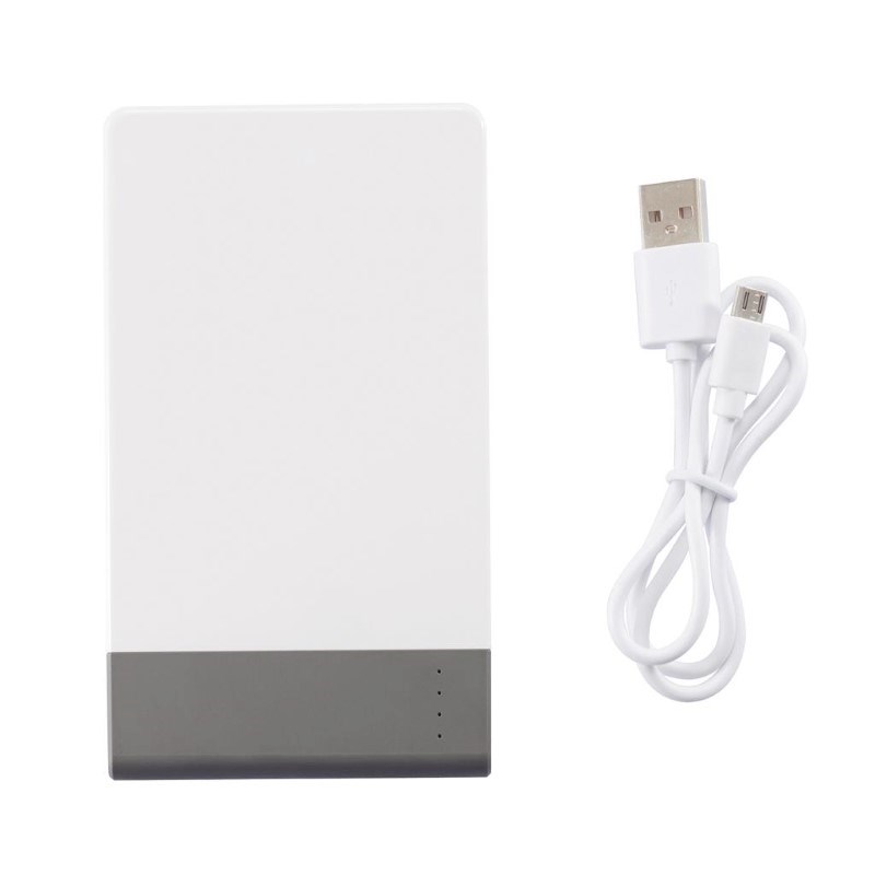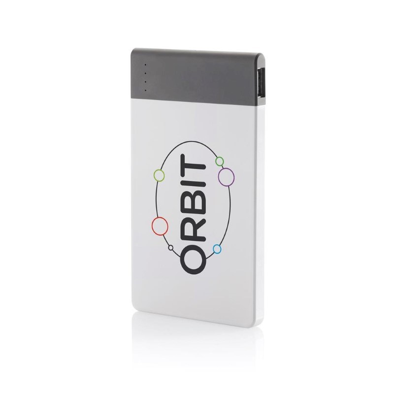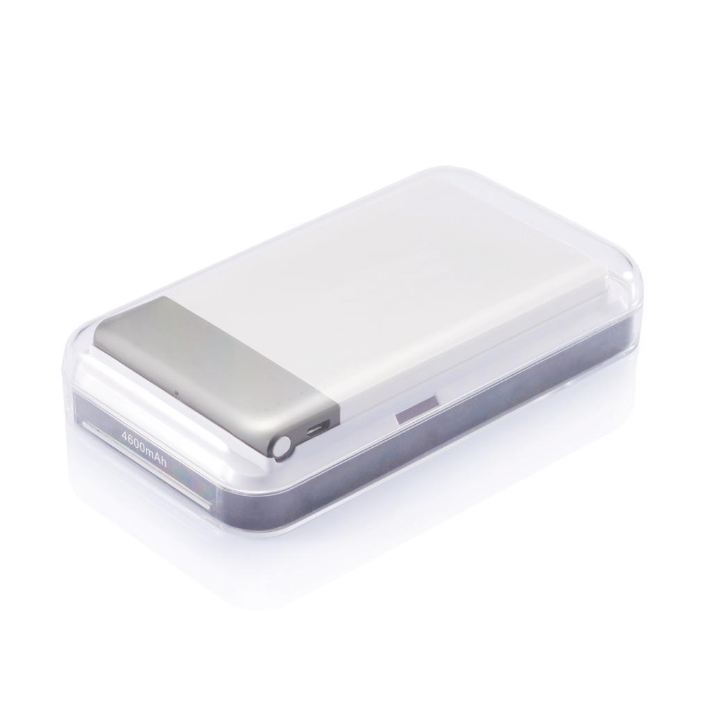 4.600 mAH ultradunne powerbank met hoge kwaliteit lithium polymeer batterij. Inclusief aan/uit knop en batterij capaciteit indicator. Output 5V/2.1A, input 5V/1A. Verpakt in transparente gift box.