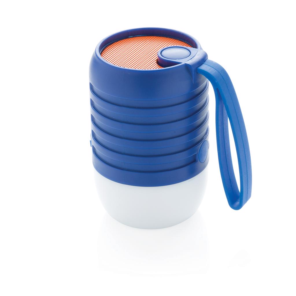 3W speaker met 400 mAh batterij. Met kleurwisselende lamp, IP4 waterdicht (spatbestendig). Perfect om buiten te gebruiken tijdens een BBQ, feest of op het strand. Maakt gebruik van draadloos BT 4.1 voor een goede verbinding tot 10 meter en 4 uur speeltijd. Kan volledig opladen in 1 uur. Inclusief microkabel voor opladen en siliconen band om uw luidspreker op te hangen.