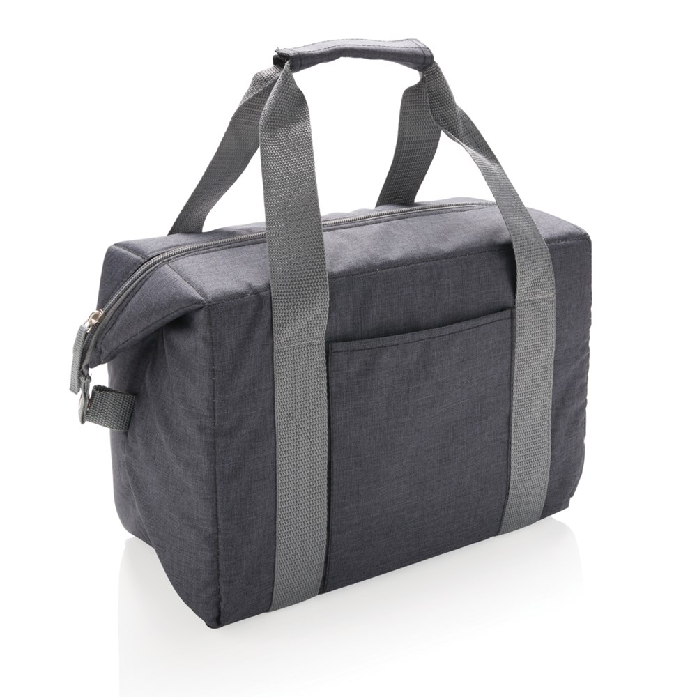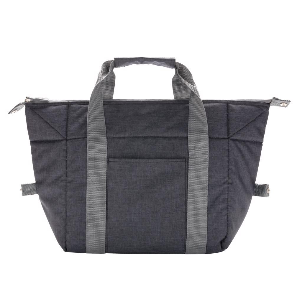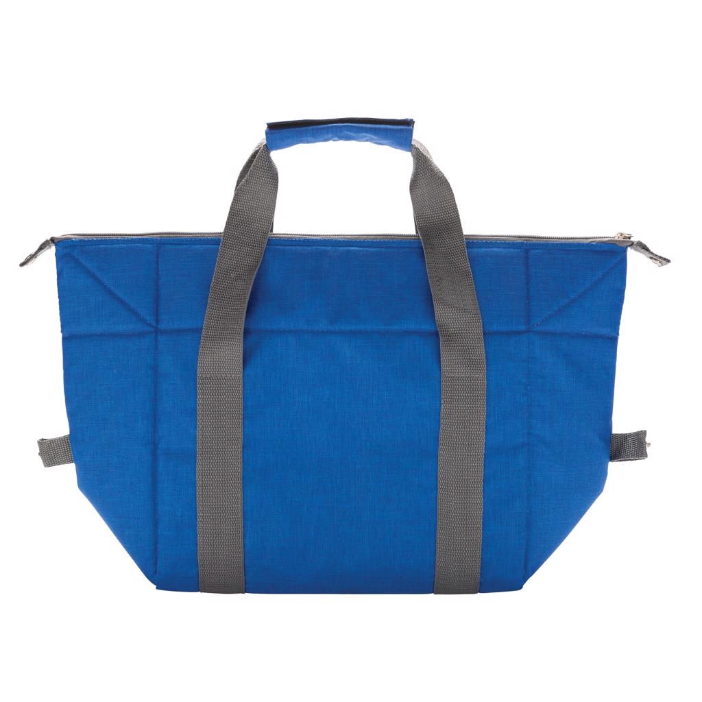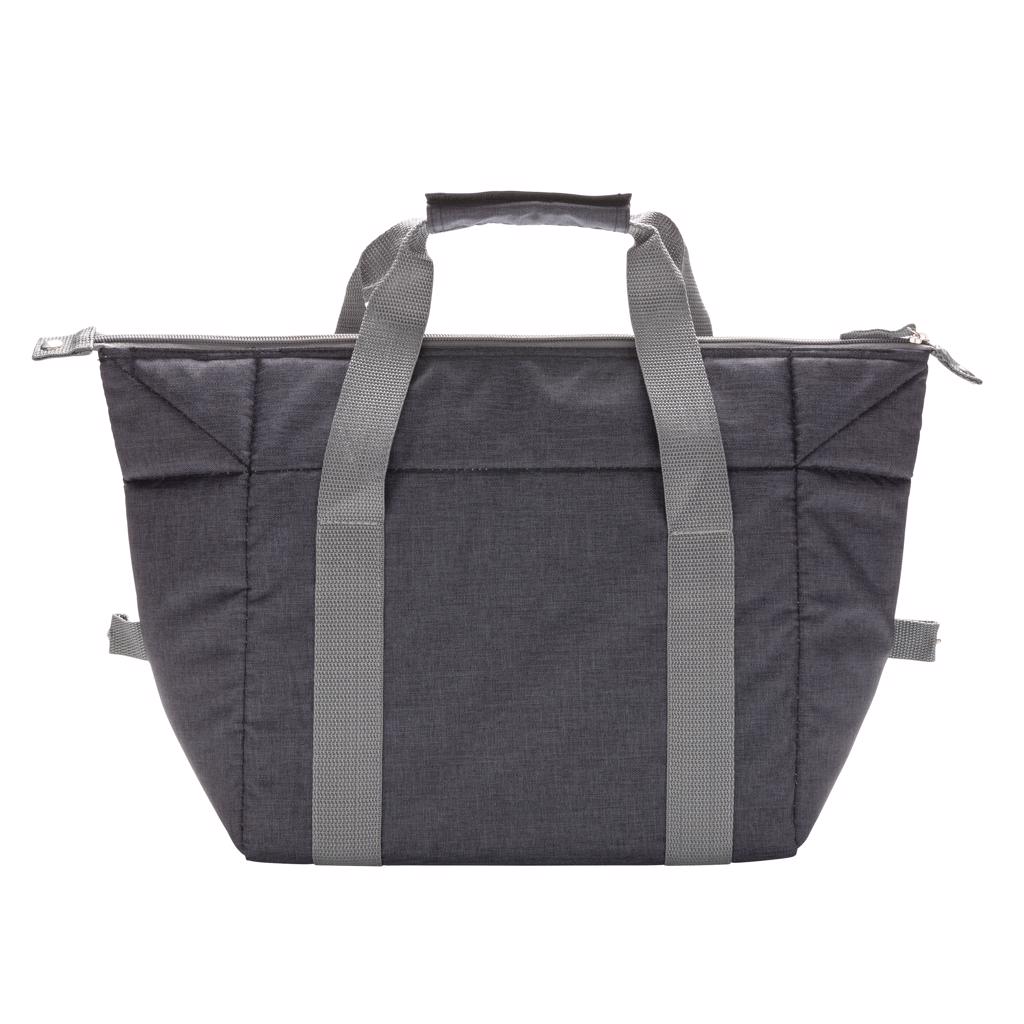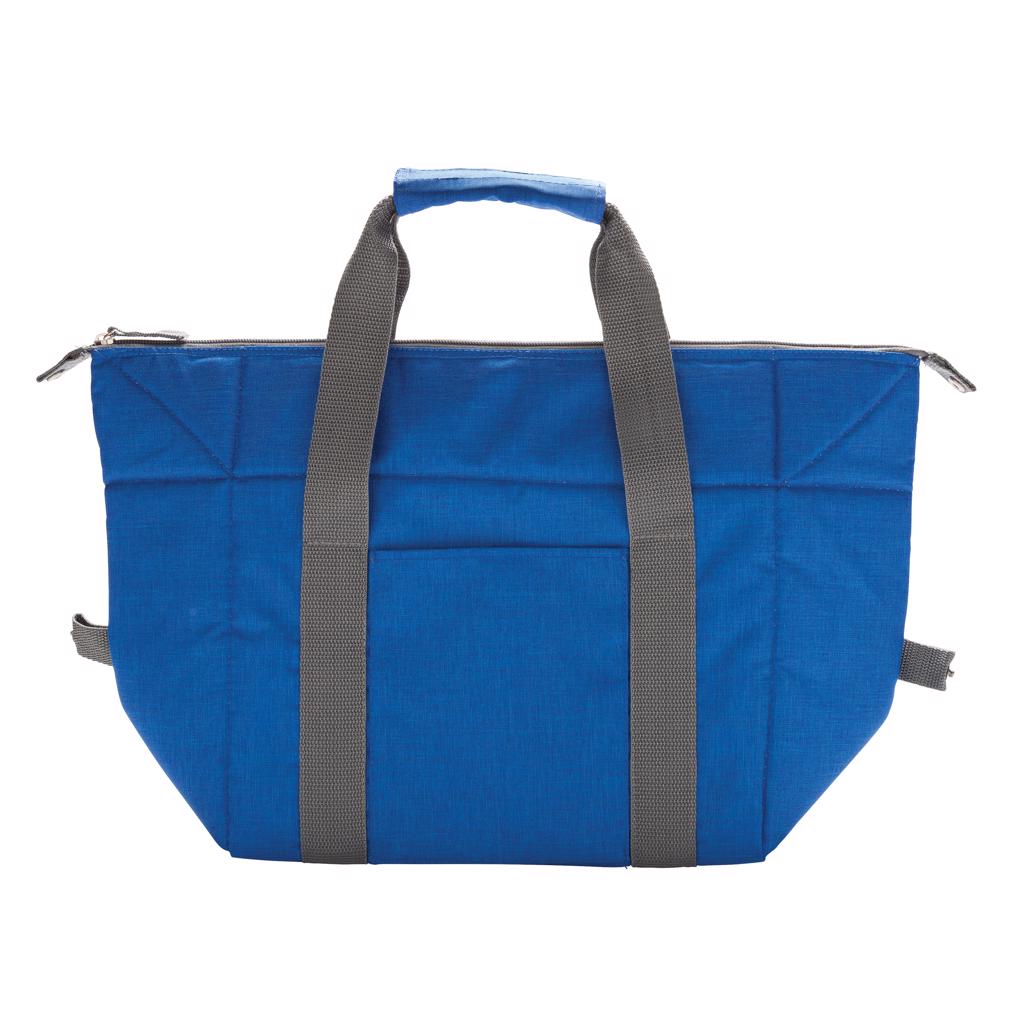 Middelgrote 600D tote koeltas. Inhoud voor maximaal 26 blikjes. Kan gemakkelijk worden omgevormd tot een duffle tas door het sluiten van de buckles aan de zijkant. Met aan de voorzijde vak.