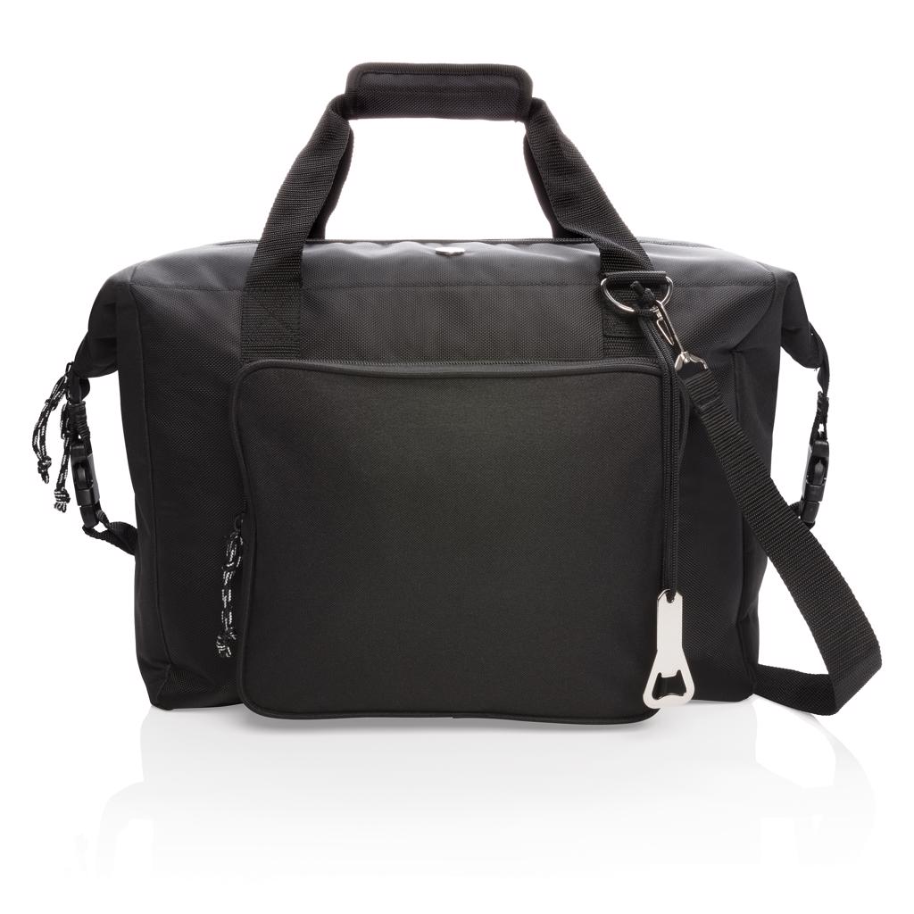 Deluxe 1680D en 600D polyester tote koeltas met extra grote hoofdvak en voorvak met rits . Deze tas kan eenvoudig worden omgezet naar koeler duffle door het sluiten van de buckle sluiting. Enorme 40L opslagruimte; geschikt voor maximaal 10 1.5L flessen of 52cans. Dubbele versterkte handgrepen. Afneembare verstelbare schouderriem. Inclusief bier opener. PEVA isolatie.