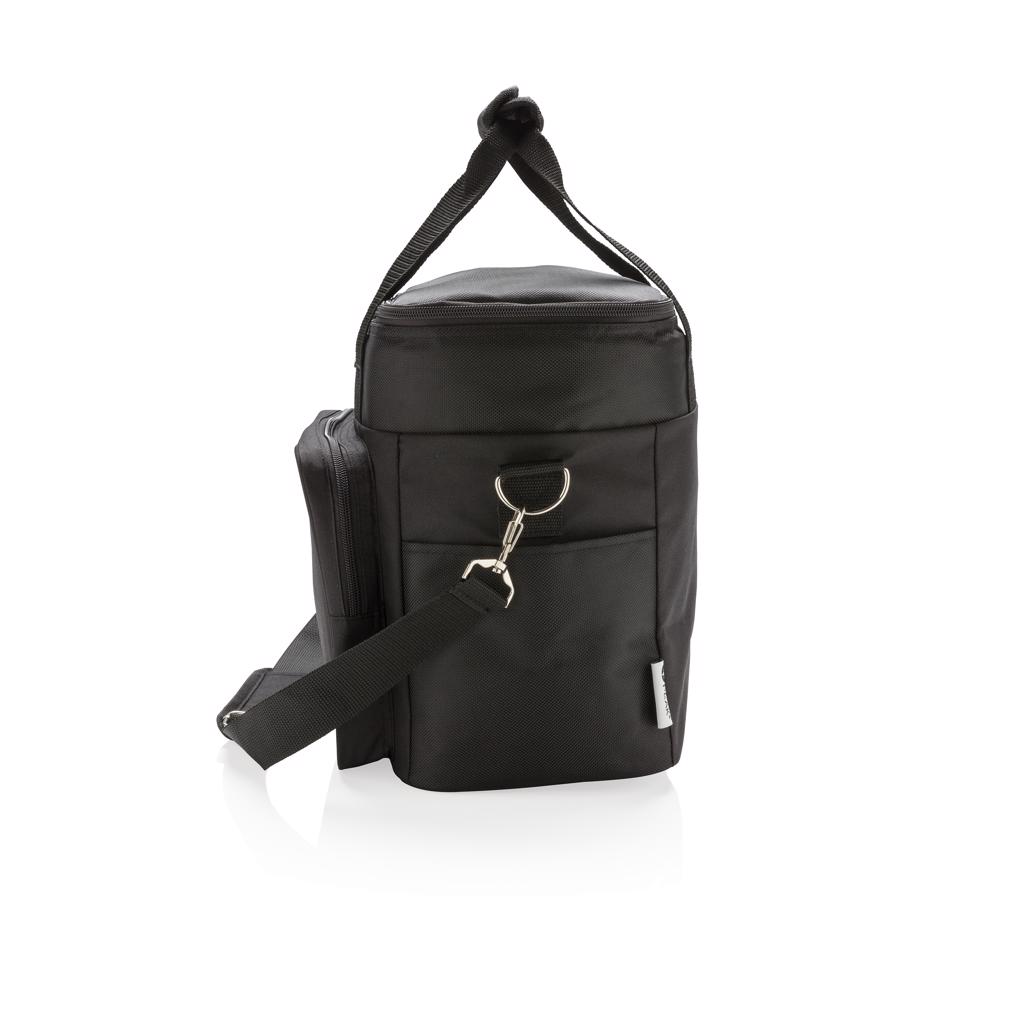 Luxe 1680D en 600D polyester koeltas met extra groot hoofd compartiment met rits. Geschikt voor maximaal 20 blikjes. 2 zijvakjes en 1 voorvak. Dubbel versterkte draaggrepen. Uitneembare verstelbare schouderriem.