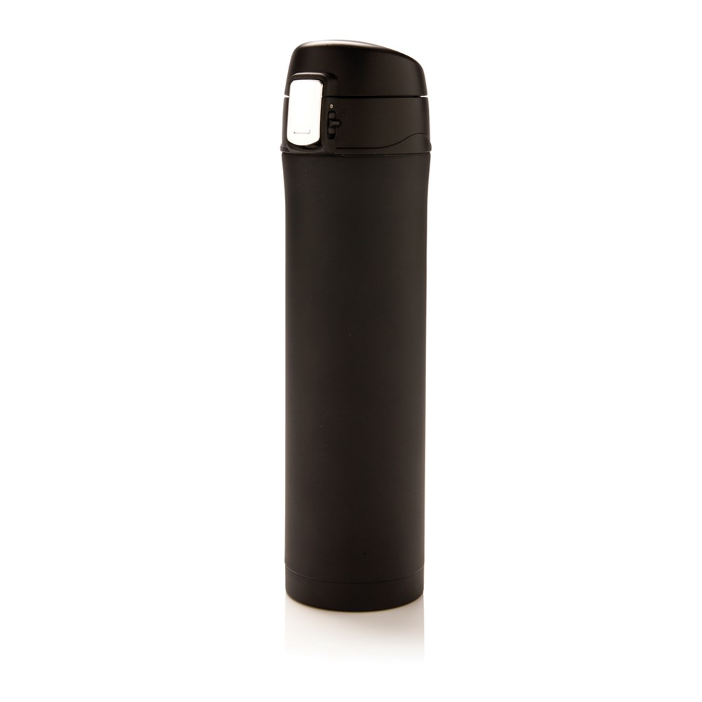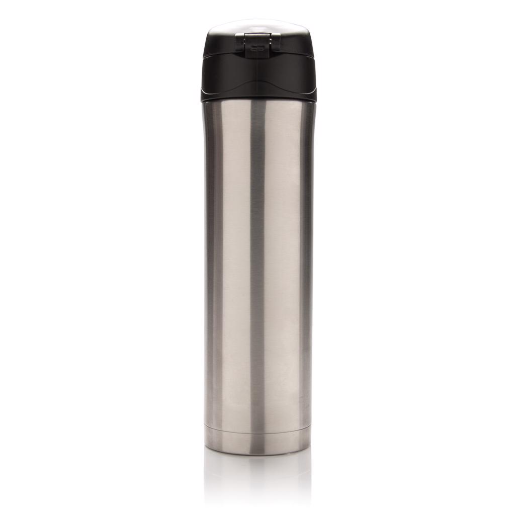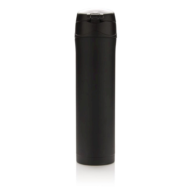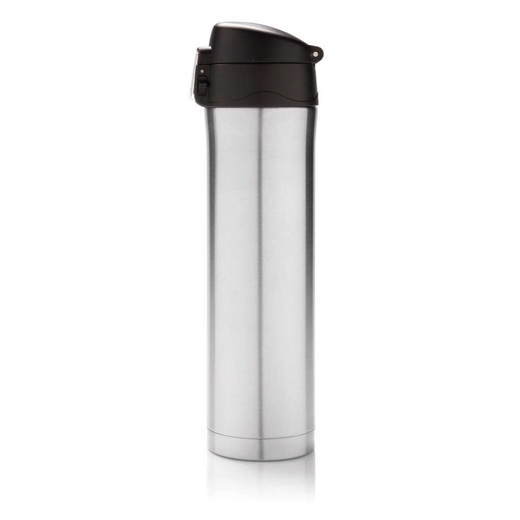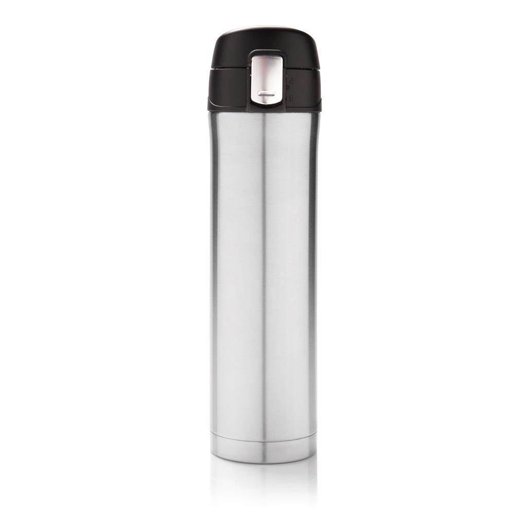 Dubbelwandige RVS vacuum geïsoleerde fles die uw warme dranken tot 5 uur lang warm houdt en uw koude dranken tot 15 uur lang koel. De dop kan vergrendeld worden en is daardoor lekvrij. De dop is makkelijk schoon te houden voor optimale hygiëne en kan zelfs in de vaatwasser. Door het unieke design is de fles met één hand te gebruiken en kunt u veilig en gemakkelijk direct uit de fles drinken. Het formaat is geschikt om in de bekerhouder van alle auto’s te plaaten en hierdoor extra handig voor onderweg. Capaciteit: 450 ml.