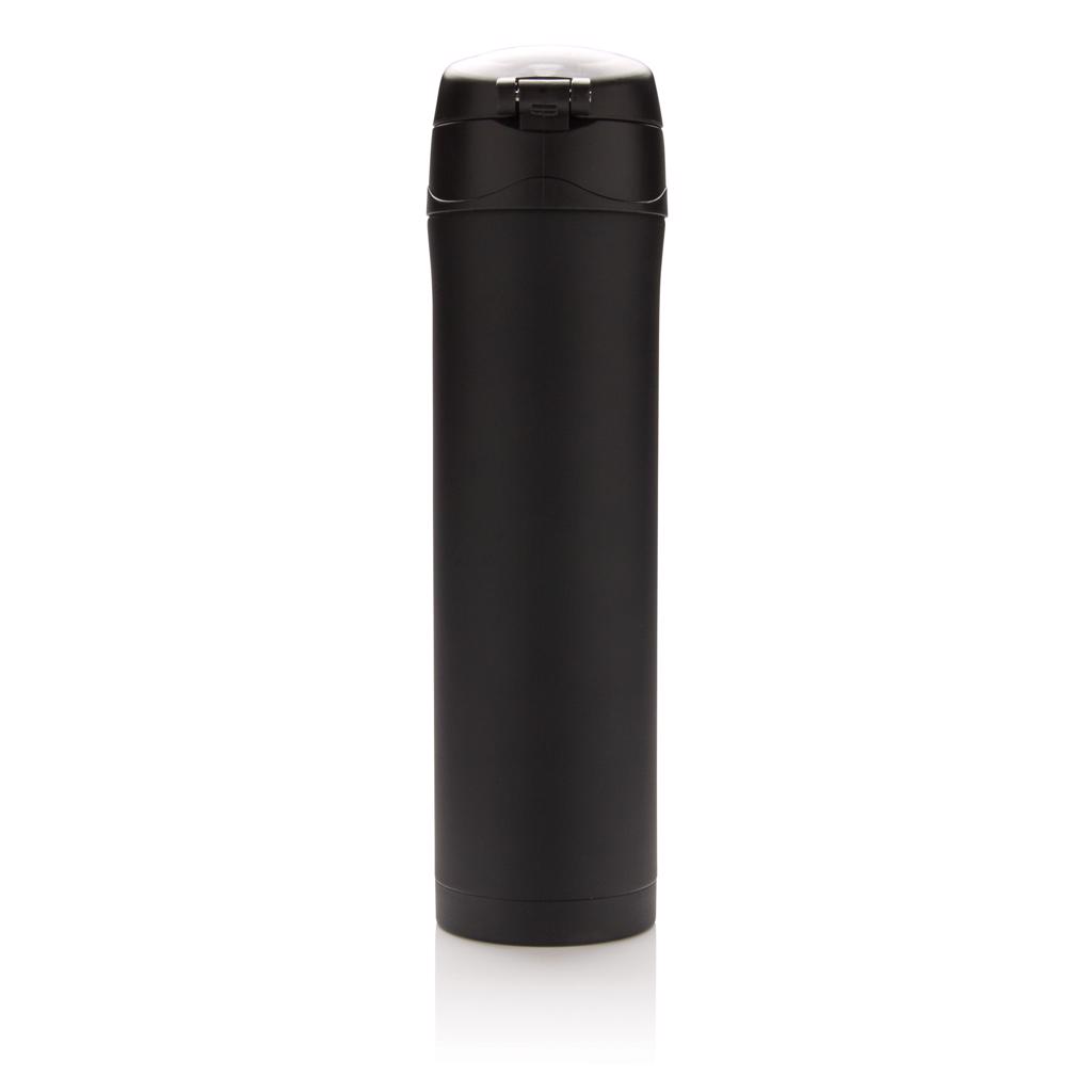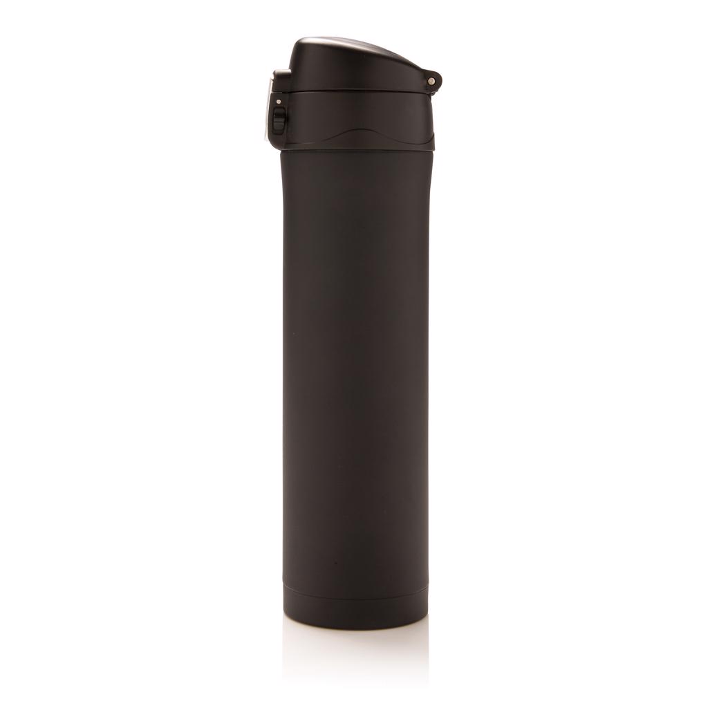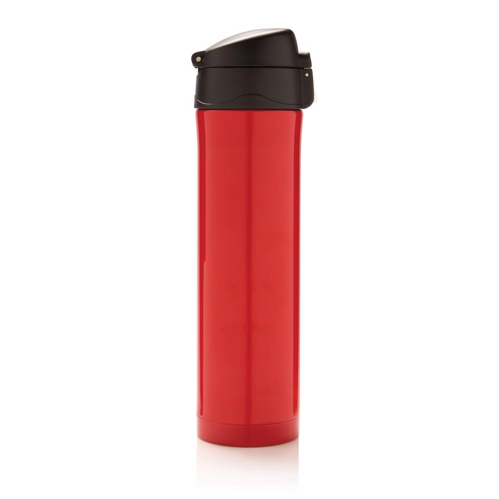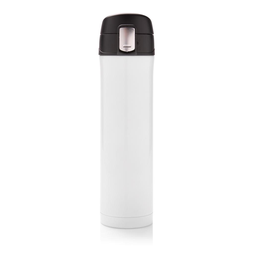 Dubbelwandige RVS vacuum geïsoleerde fles die uw warme dranken tot 5 uur lang warm houdt en uw koude dranken tot 15 uur lang koel. De dop kan vergrendeld worden en is daardoor lekvrij. De dop is makkelijk schoon te houden voor optimale hygiëne en kan zelfs in de vaatwasser. Door het unieke design is de fles met één hand te gebruiken en kunt u veilig en gemakkelijk direct uit de fles drinken. Het formaat is geschikt om in de bekerhouder van alle auto’s te plaaten en hierdoor extra handig voor onderweg. Capaciteit: 450 ml.