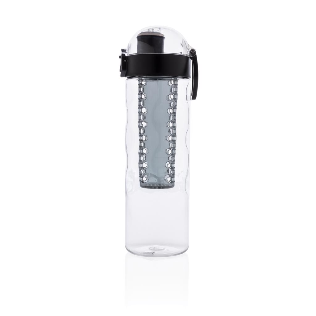 Voeg gezonde fruitsmaken toe aan je water. Deze designfles met honingraatdetails biedt gemakkelijk drinken met één hand. Druk op de knop en het deksel gaat open. Er is een speciaal sluit mechanisme om te voorkomen dat gebruikers per ongeluk op de knop drukken. Inclusief handgreep. Deze waterfles is gemaakt van duurzaam en innovatief tritan materiaal. Geurloos en 100% zonder BPA. Inhoud 700ml. Geregistreerd ontwerp®