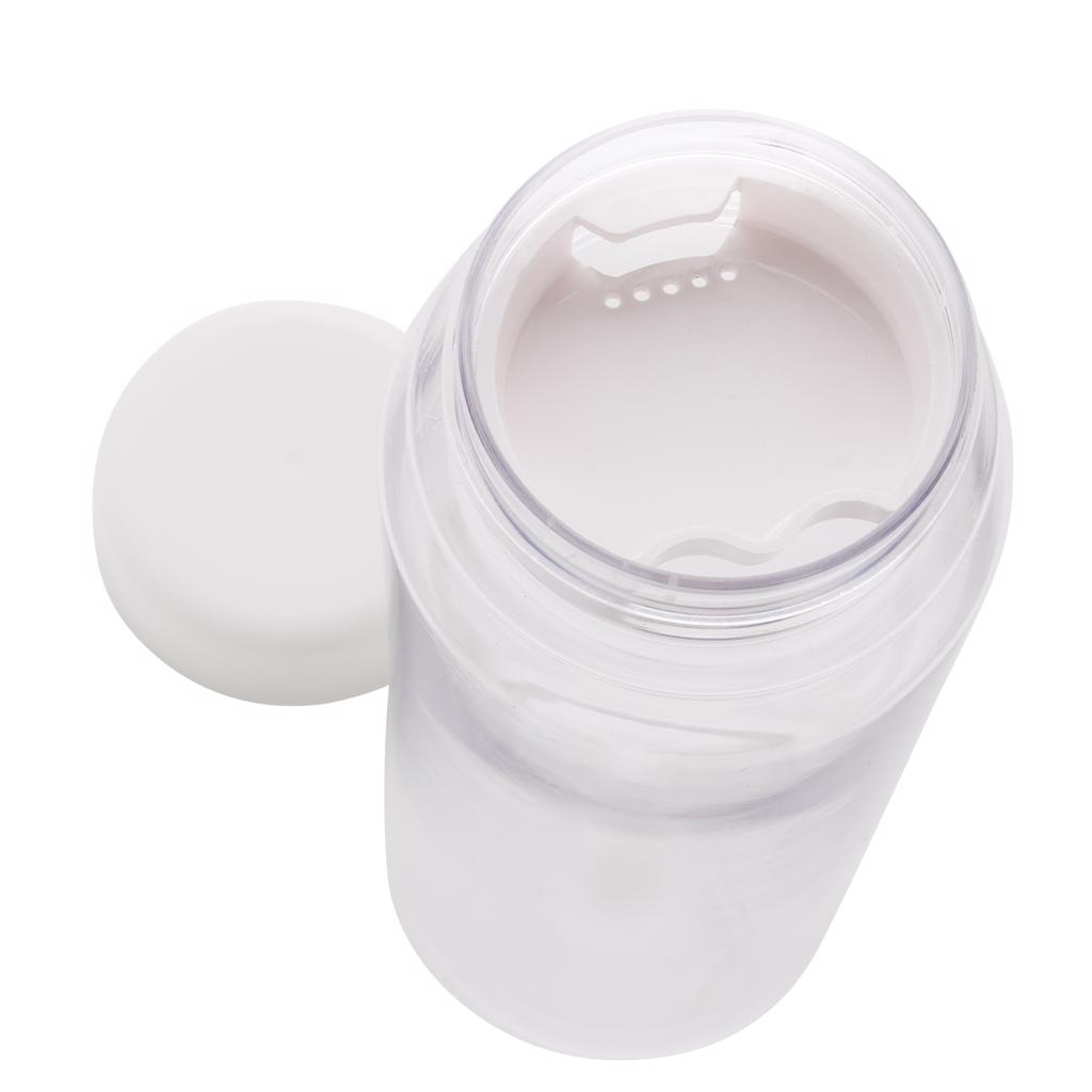 Lekvrije Tritan fles met infuser. Voeg vitaminen en smaak toe aan uw drankje door het toevoegen van vers fruit. In de bovenkant van de fles zit een speciale infuser die een vlotte waterdoorvoer waarborgt en uw fruit in de fles houdt. Alleen handwas. Inhoud 500 ml.
