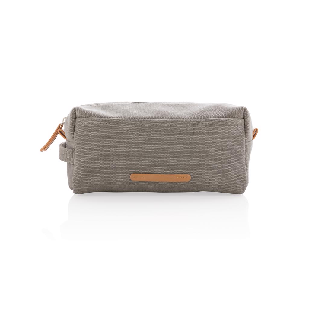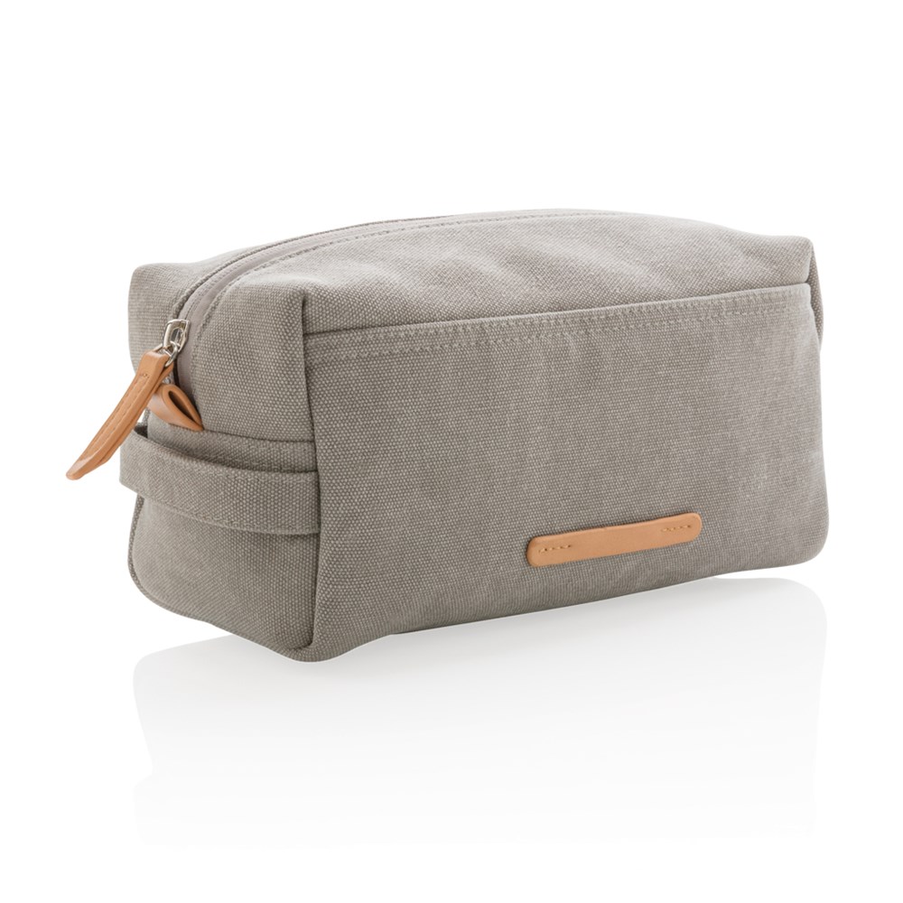 Deze toilettas van natuurlijk en duurzame canvas is een ideale reisgenoot die gemakkelijk in uw handbagage past. PVC vrij.