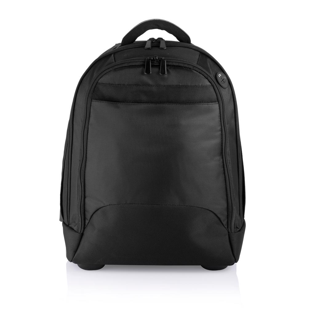 1680D nylon met lichtmetalen velgen, 4 compartimenten met legio opbergmogelijkheden, gevoerd laptopvak, solide bodem, aluminium trolley hendel, gevoerde schouderriemen (op te bergen in apart vak), beschermhoesjes voor de wielen voor gebruik als rugzak en hoofdtelefoonuitgang.