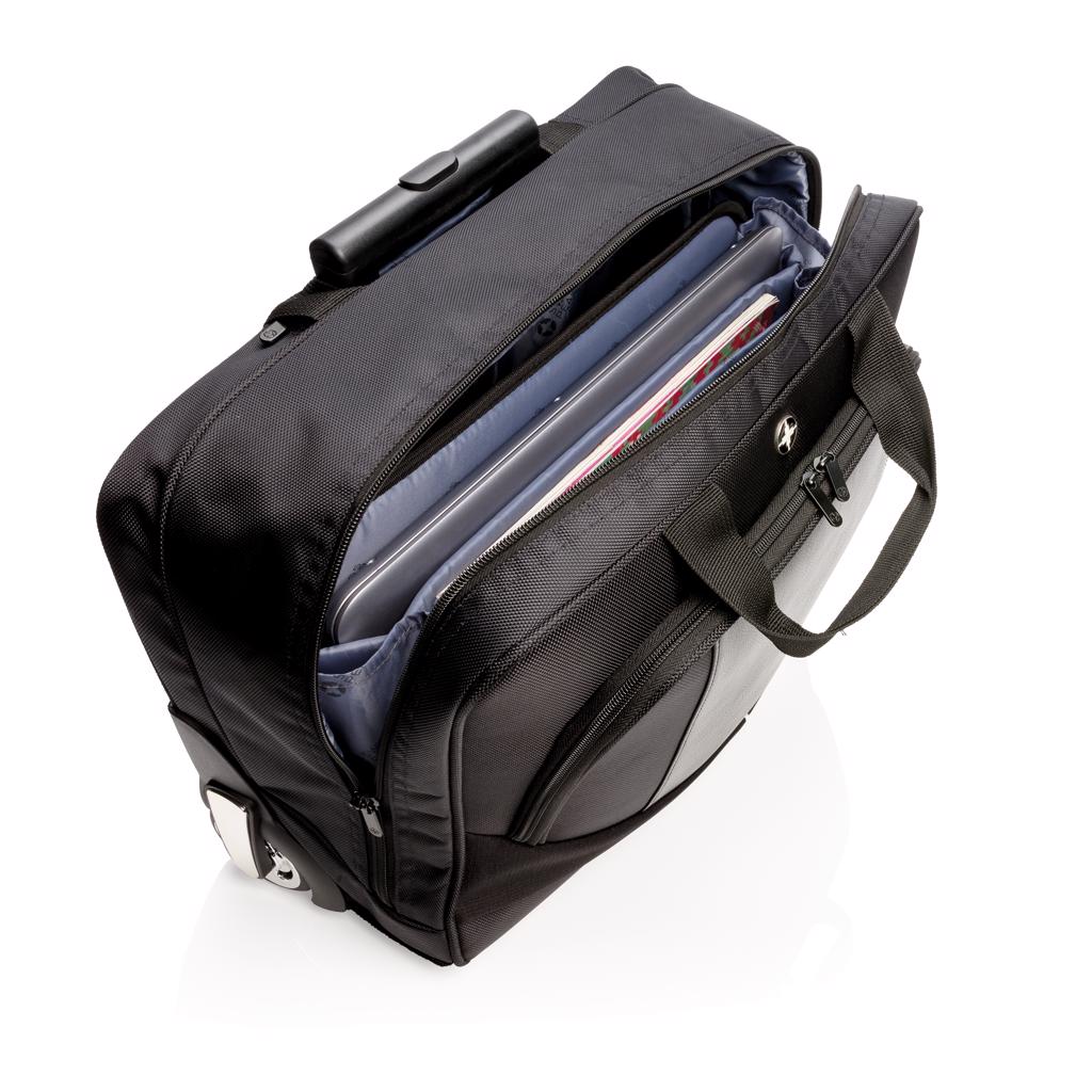 Berg al uw documenten op in deze business trolley. Uw laptop en papieren kunnen netjes gesorteerd worden in één van de compartimenten, waarvan sommige zelfs op slot kunnen. Met een double tube telescopische handvat voor stabiliteit onderweg. Geregistreerd ontwerp®