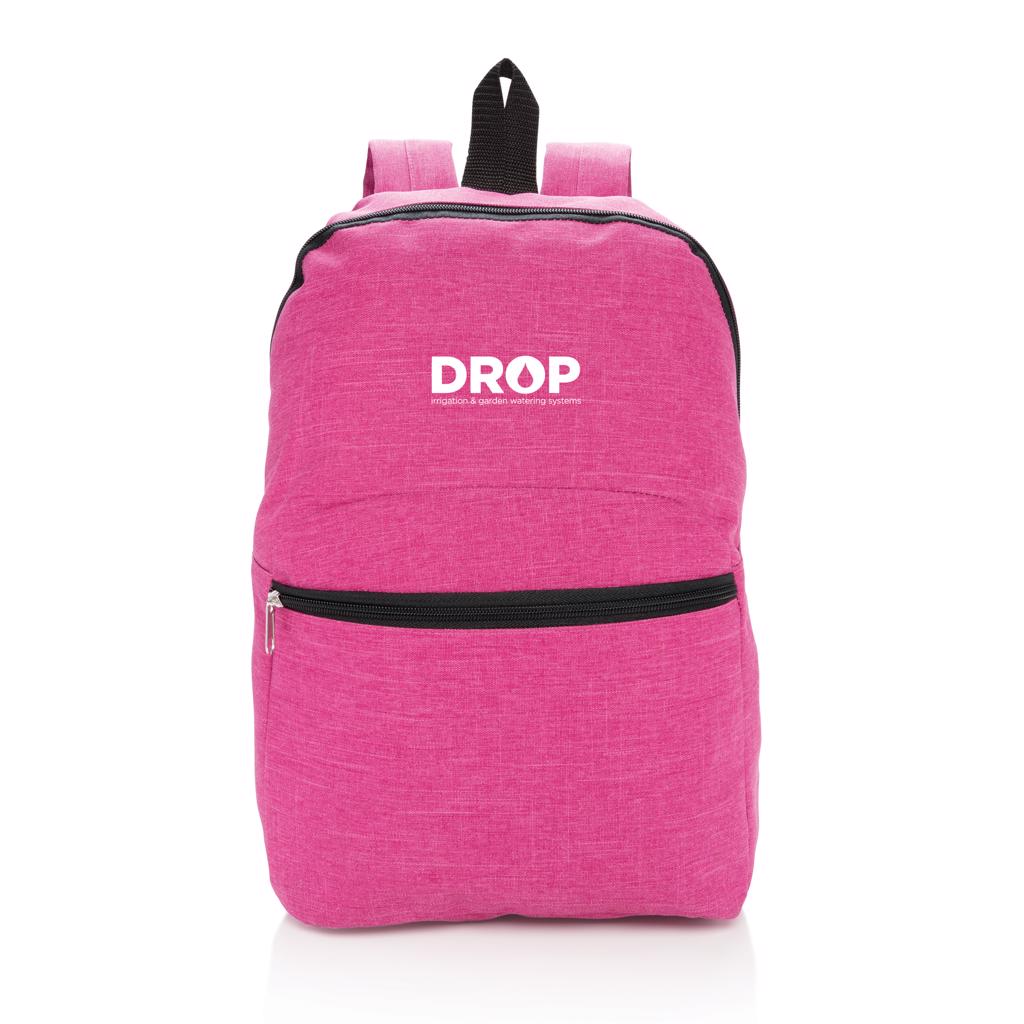 Compacte en lichtgewicht basic 600D duo tone polyester rugtas voor dagelijks gebruik. Het voorvak met rits is eenvoudig toegankelijk. Uw ideale reisgenoot.