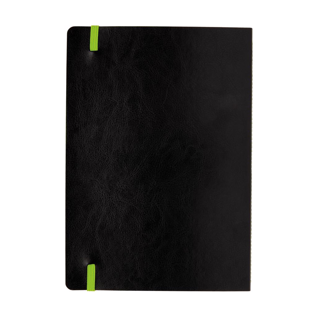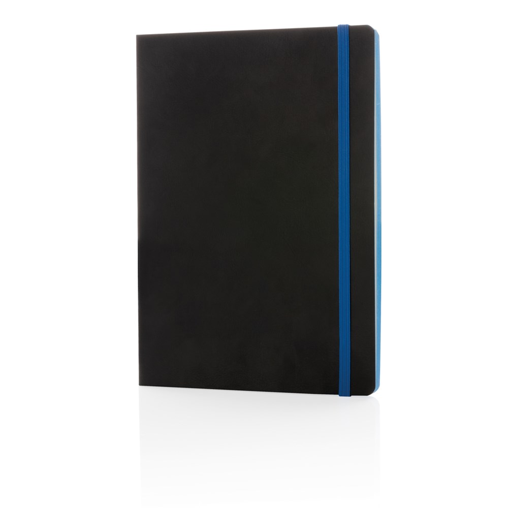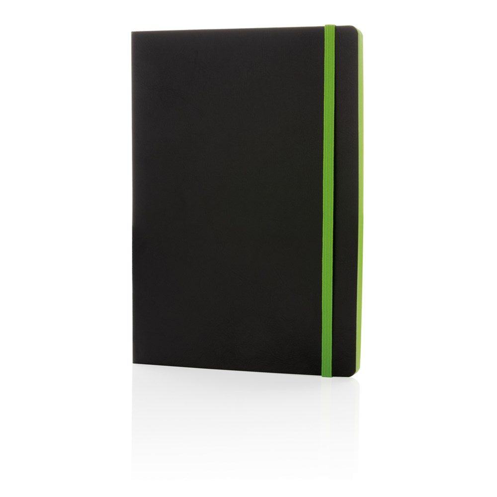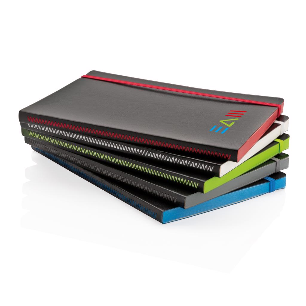Luxe flexibele softcover A5 notitieboek met mooi gekleurd design detail op de rug. Gekleurde band en pagina rand. Met 90 vel/180 crèmekleurige pagina's van 70 g/m2 aan de binnenkant.