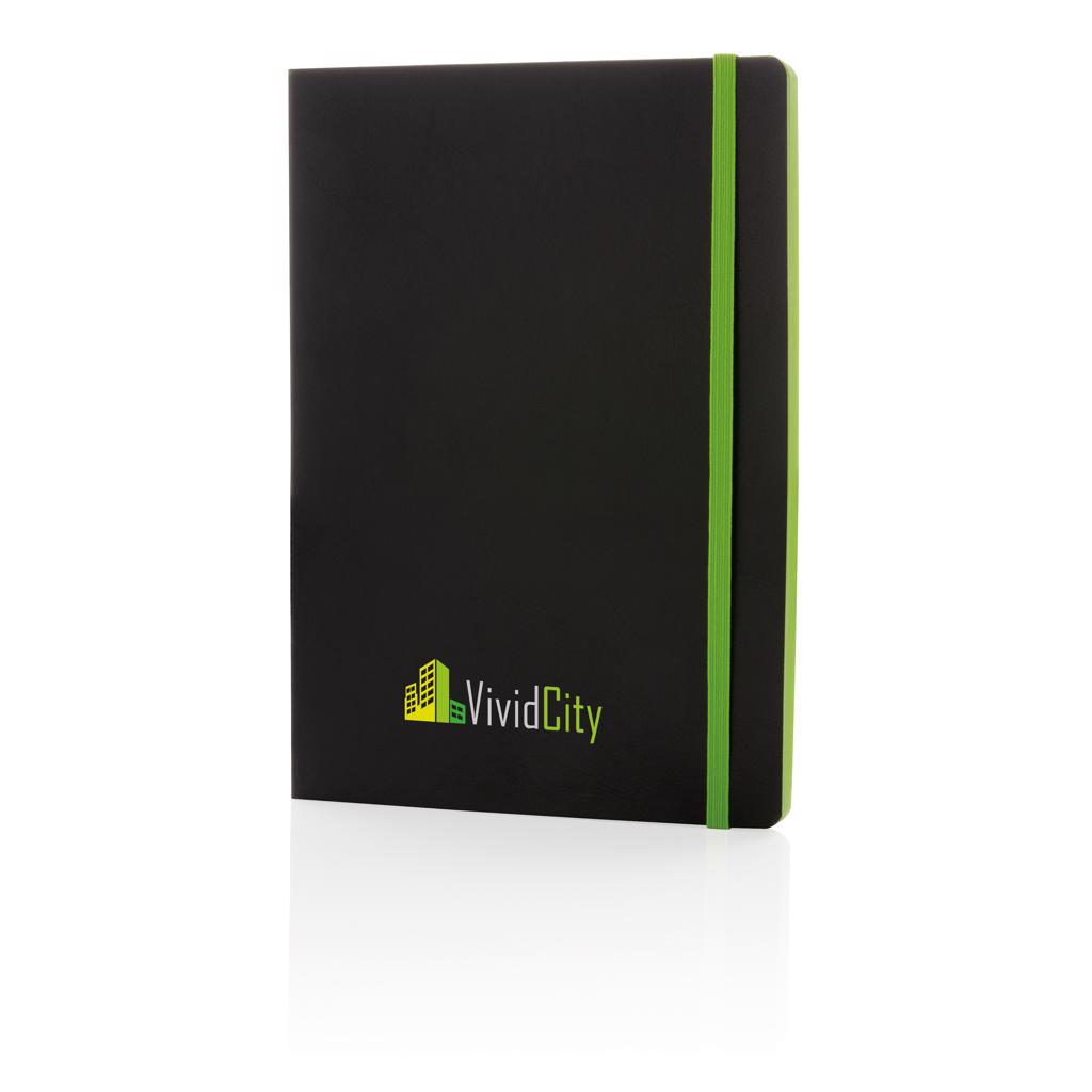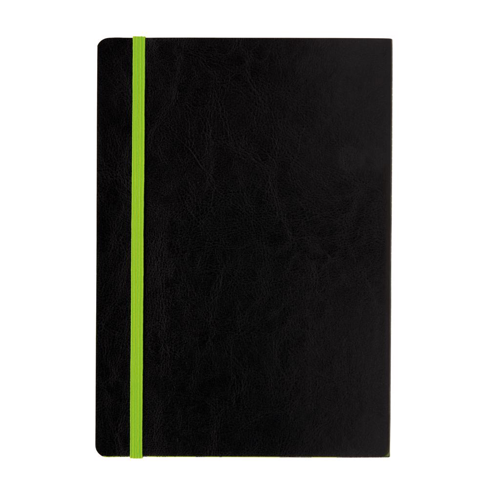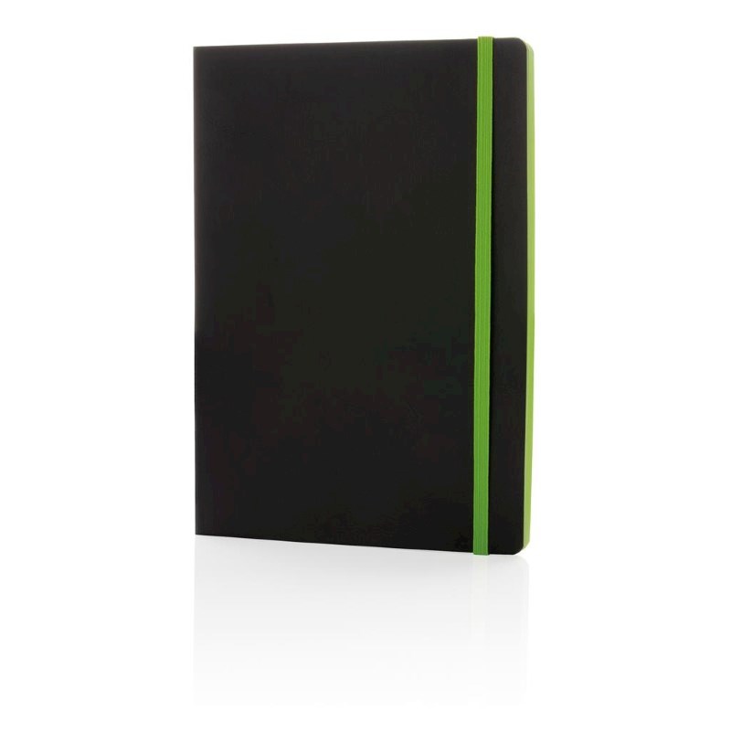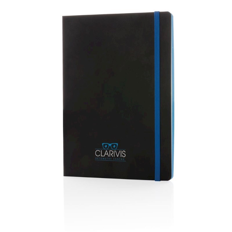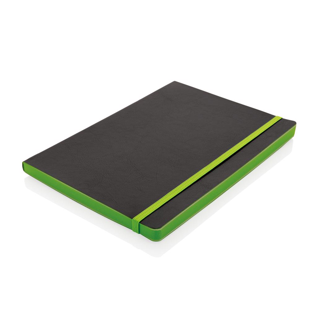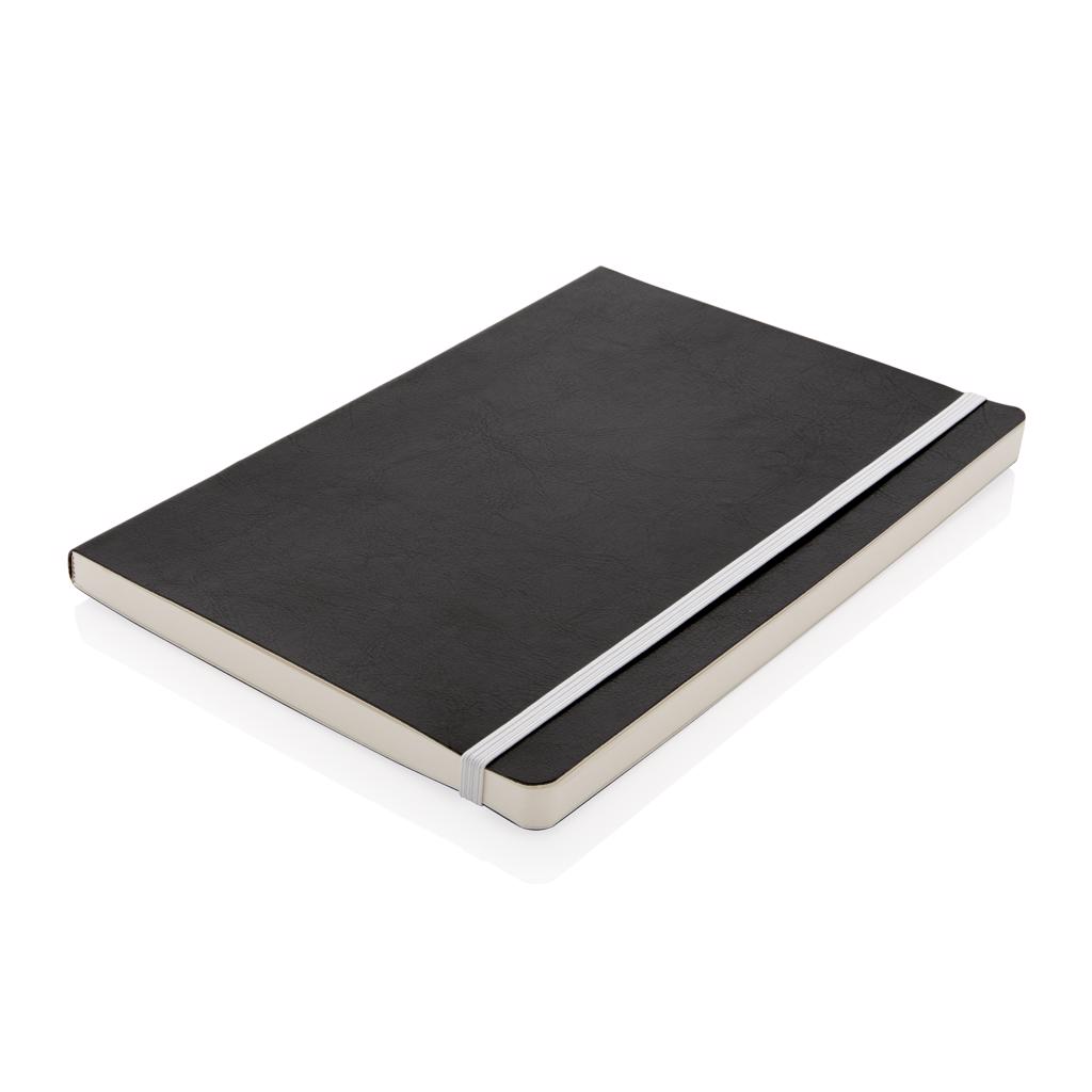 Luxe flexibele softcover A5 notitieboek met mooi gekleurd design detail op de rug. Gekleurde band en pagina rand. Met 90 vel/180 crèmekleurige pagina's van 70 g/m2 aan de binnenkant.