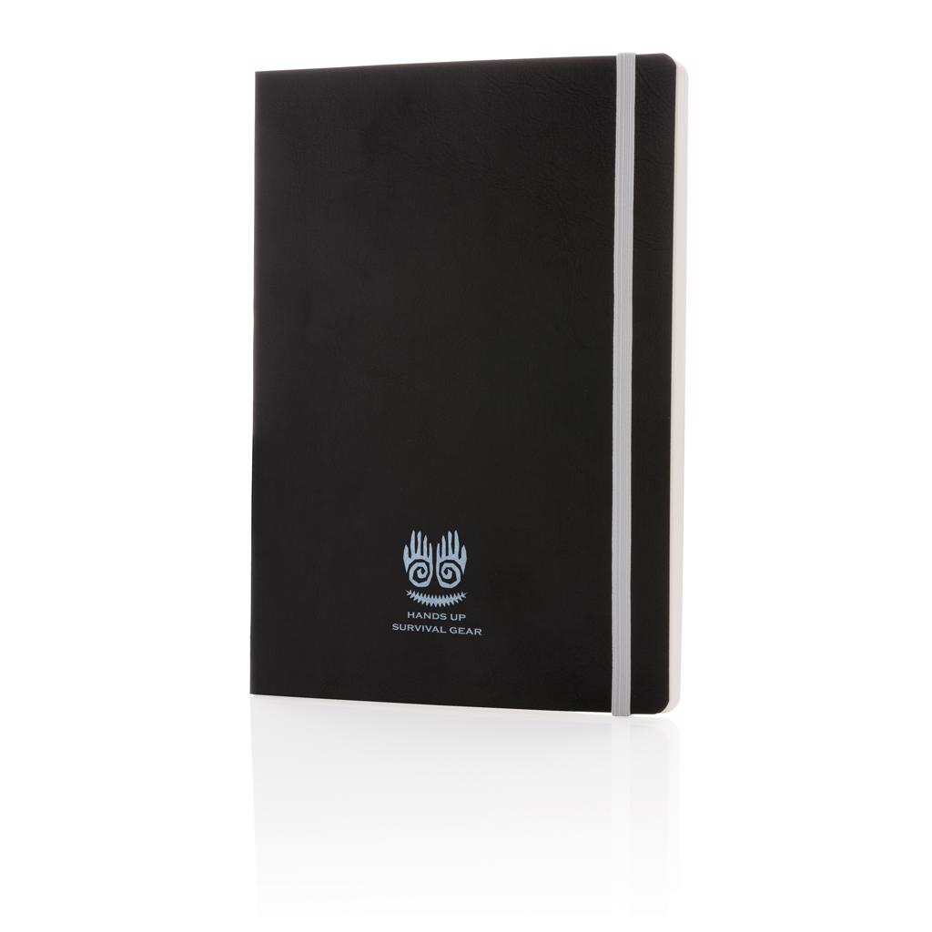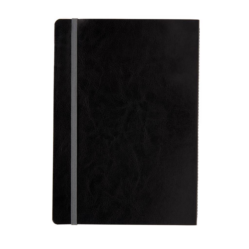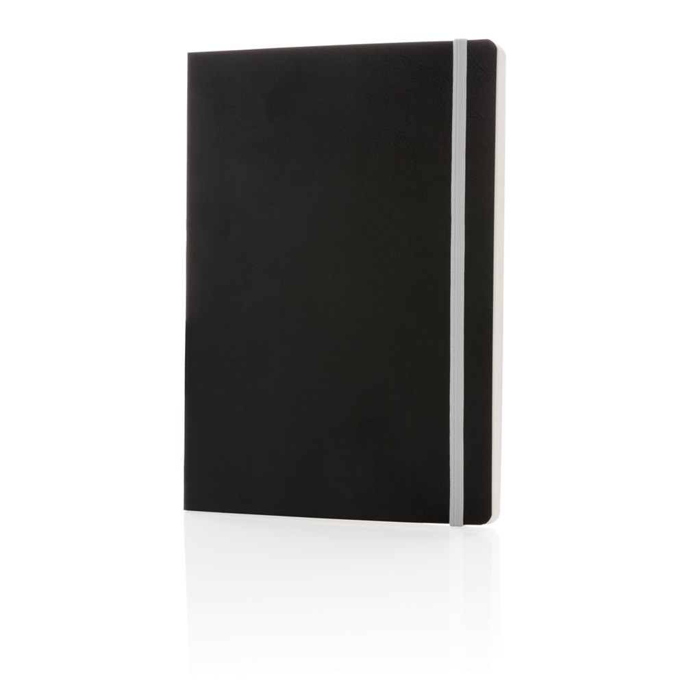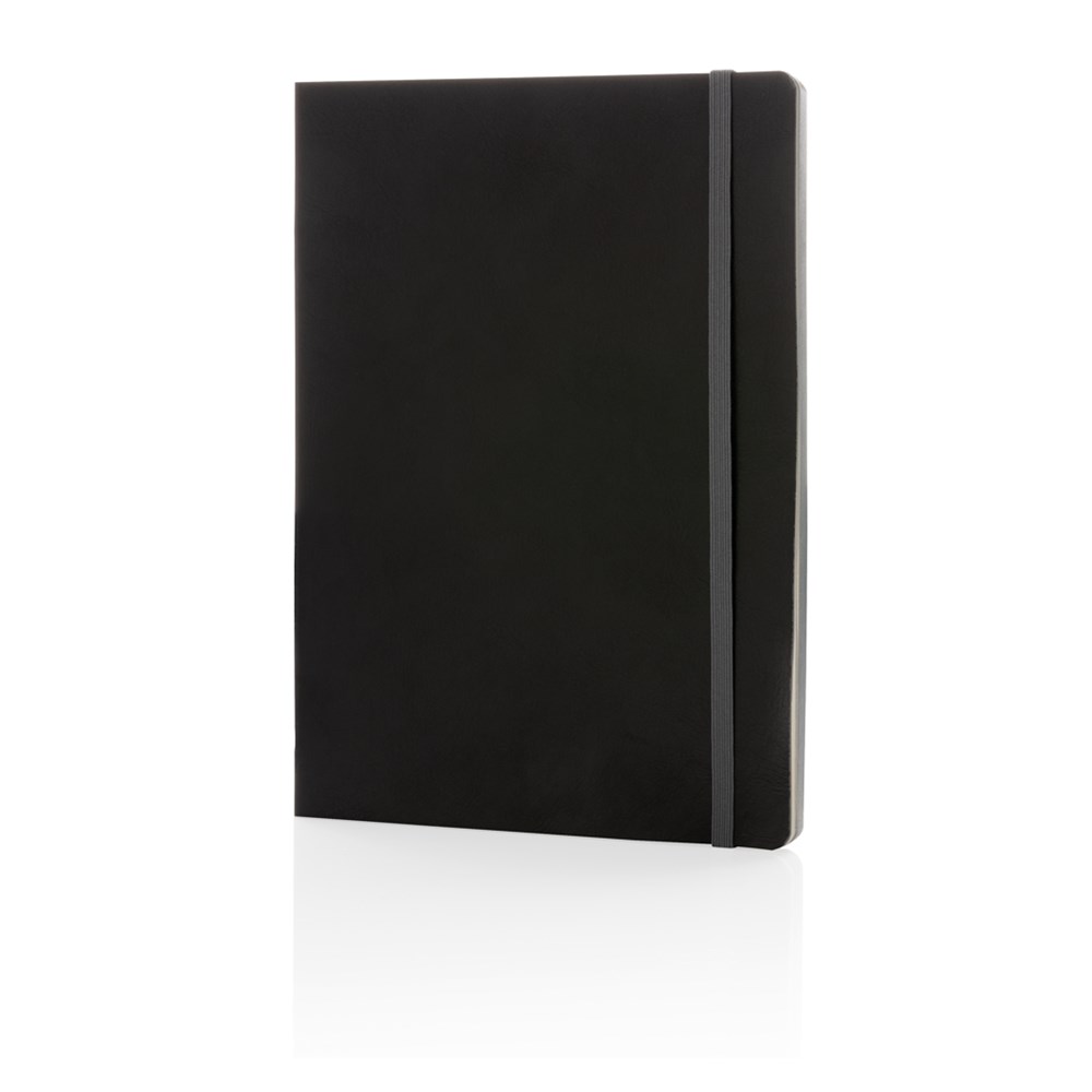 Luxe flexibele softcover A5 notitieboek met mooi gekleurd design detail op de rug. Gekleurde band en pagina rand. Met 90 vel/180 crèmekleurige pagina's van 70 g/m2 aan de binnenkant.
