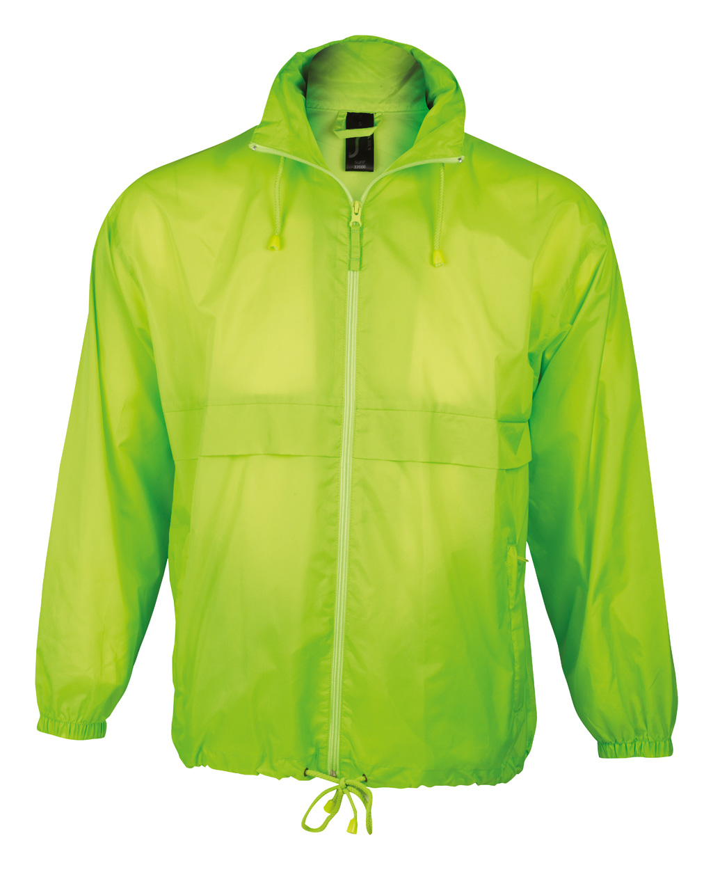 Unisex, wind en waterdichte jas met opvouwbare capuchon in de kraag. De jas is opvouwbaar. Materiaal: 100% 210T Nylon.