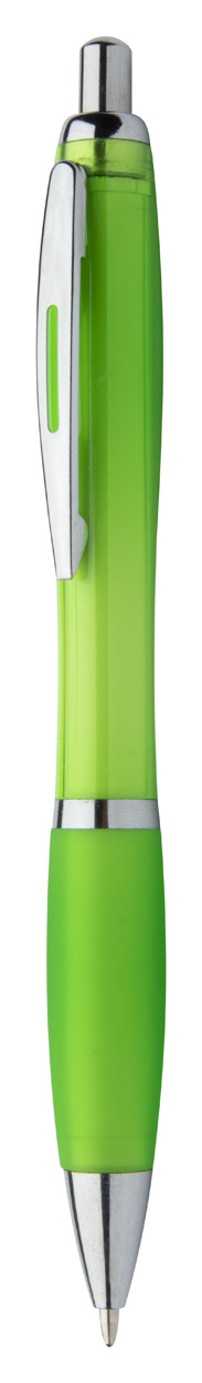 Kunststof balpen met bijpassende kleur grip en glanzend chromen onderdelen. Blauw schrijvend.