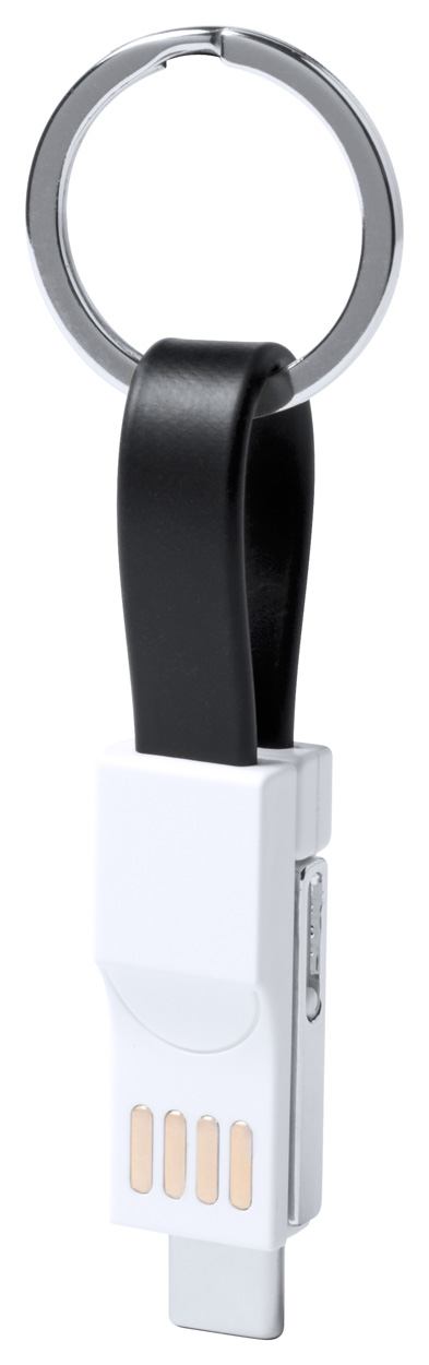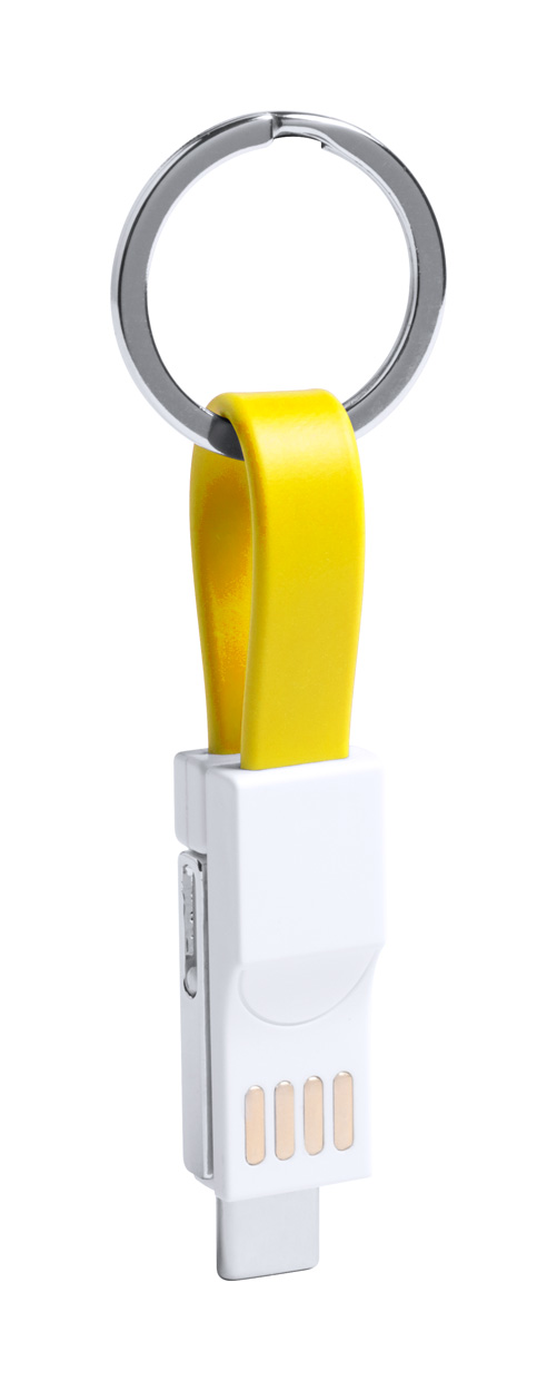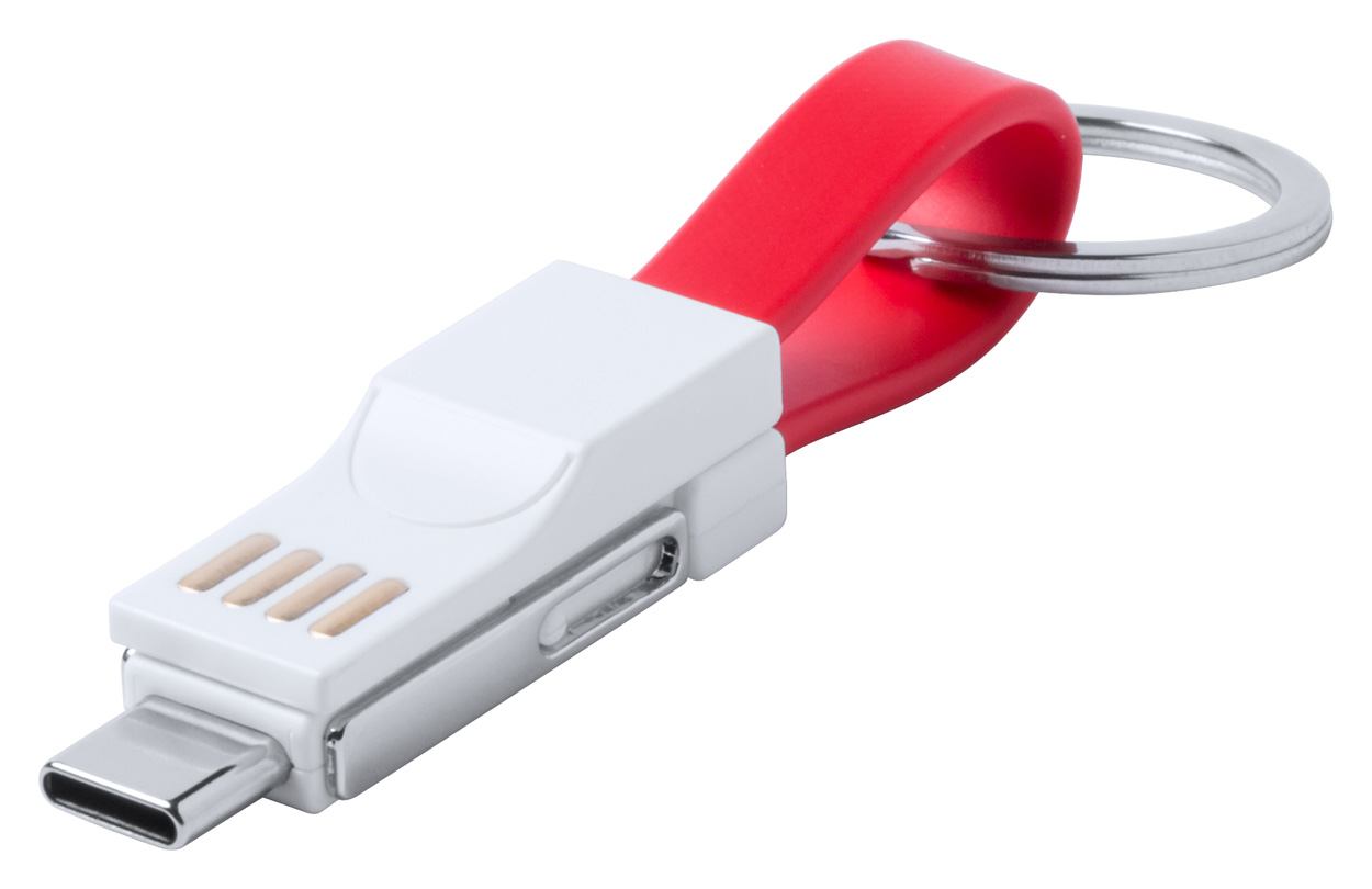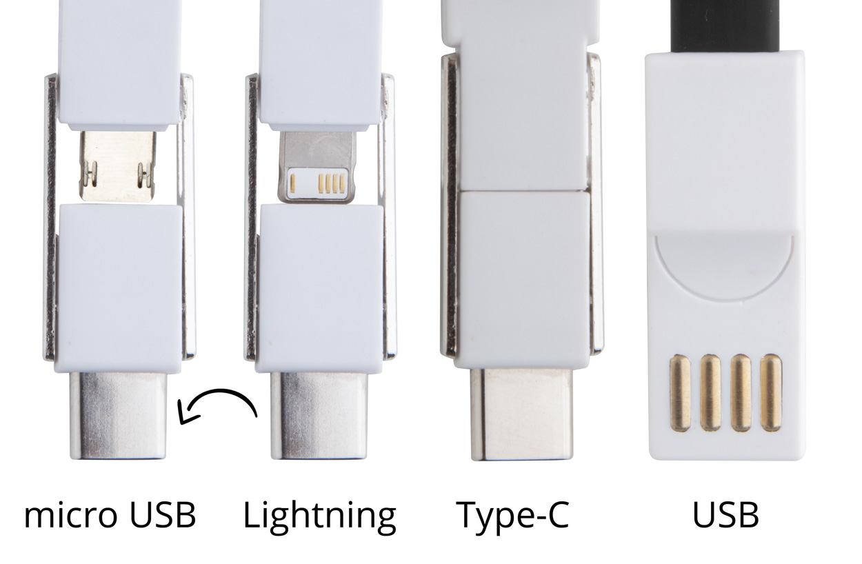 Sleutelhanger met USB oplaadkabel, USB-C en Lightning connectors.