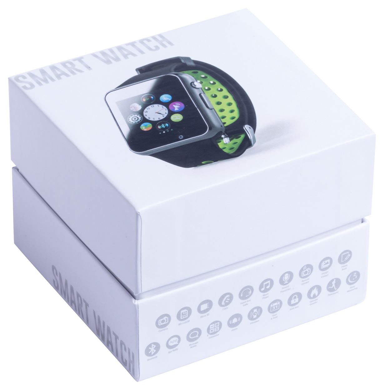 Meertalig, bluetooth smart watch met 1,54 "LCD-scherm, siliconenriem en ingebouwde camera. Inclusief USB-oplaadkabel.