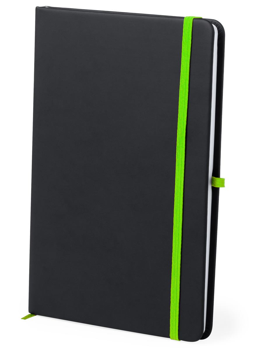 PU lederen notitieboek met 100 gelinieerde bladzijdes, gekleurde boekenlegger en rubberen strap. Met speciale coating voor gravure, het gegraveerde logo matched de boekenlegger en strap kleur.