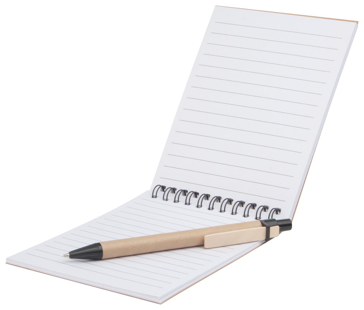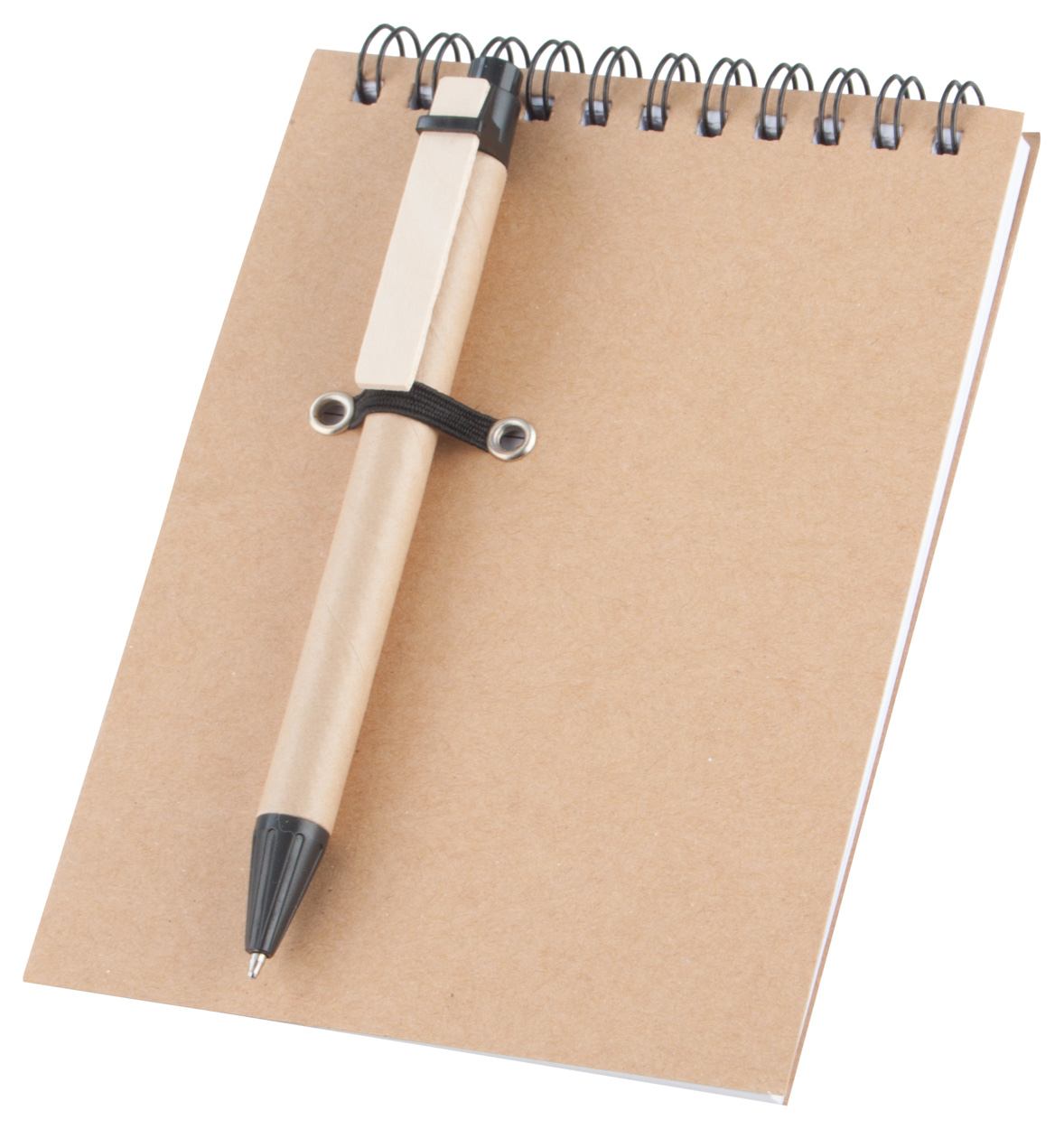 Notitieblokje met 60 gelinieerde blaadjes en pen, gemaakt van gerecycled papier.