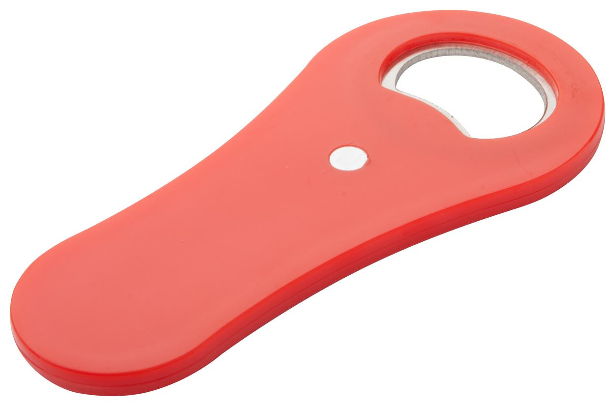 Plastic flessen opener, kan ook gebruikt worden als magneet.