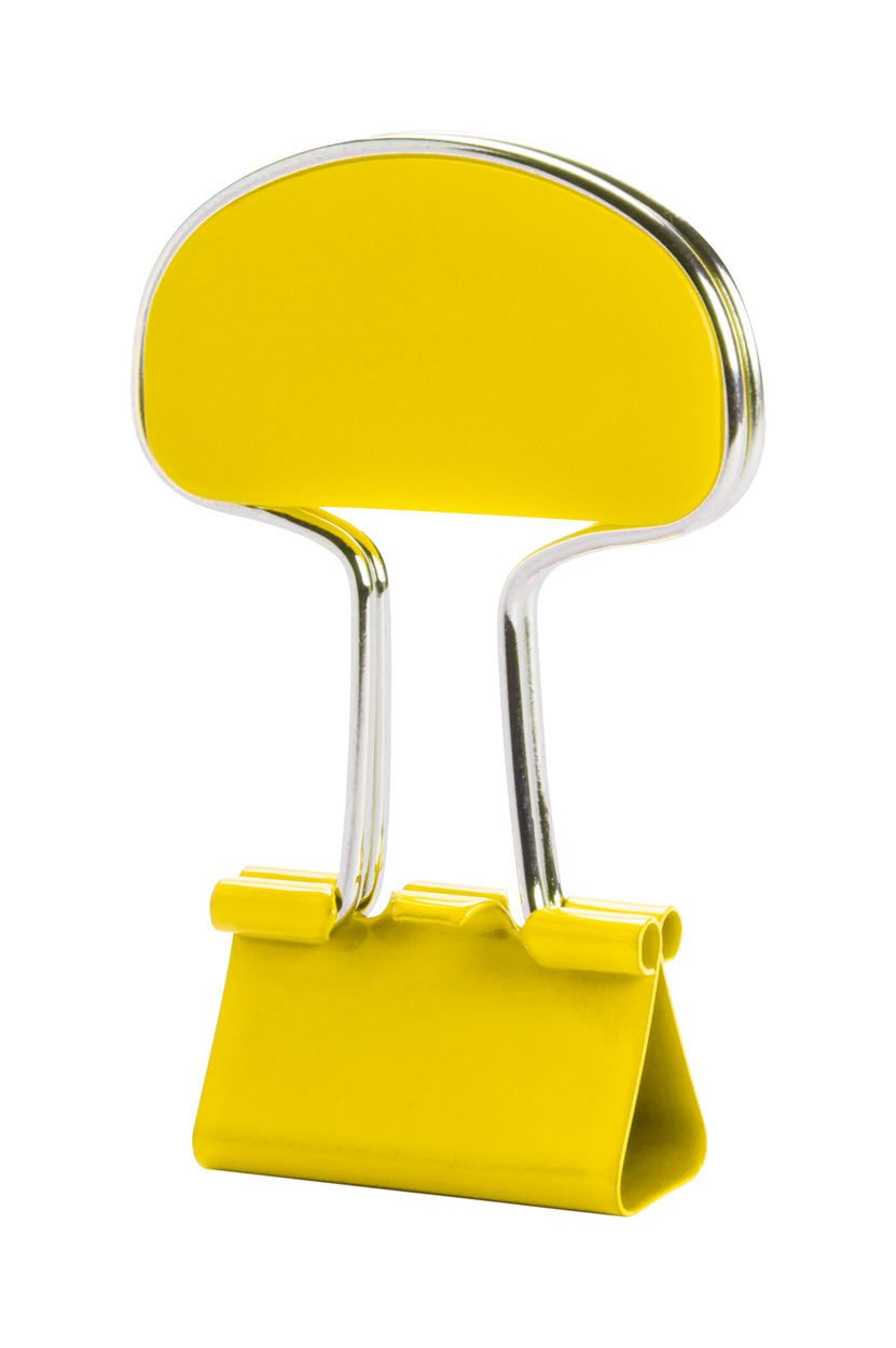 Metalen notitieclip met bijpassende gekleurde plastic gedeeltes.