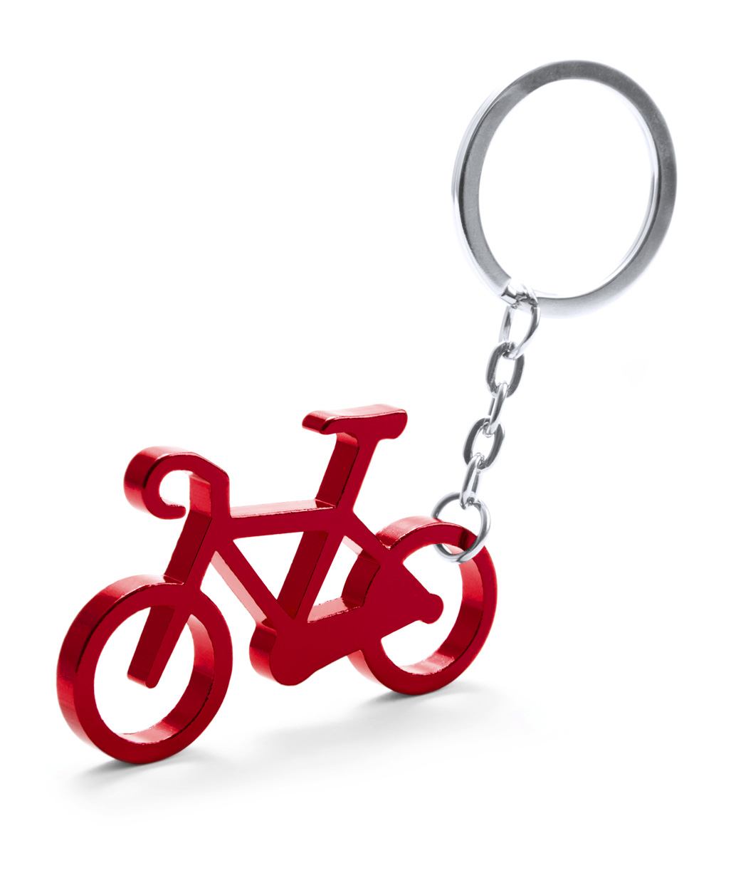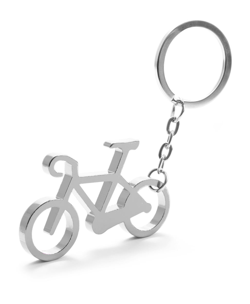 Aluminium sleutelhanger in de vorm van een fiets. Tevens flesopener.