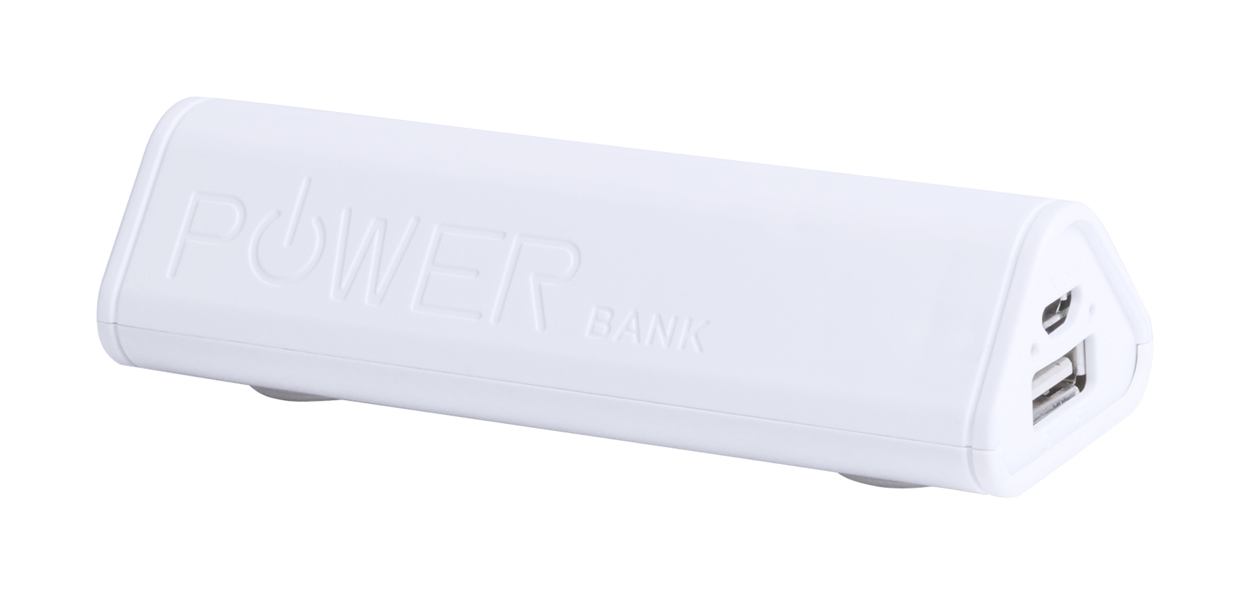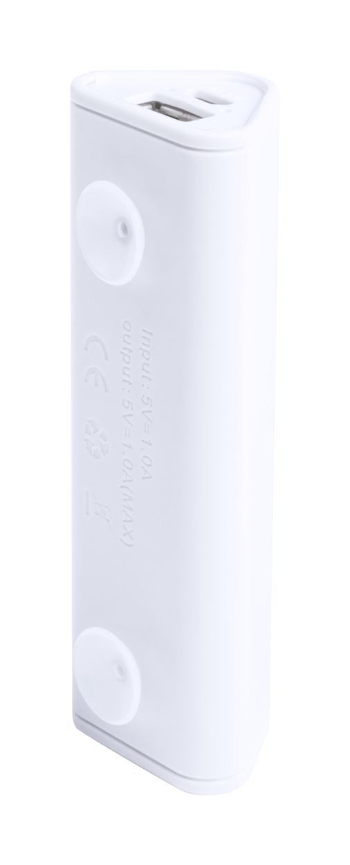 Driehoekige plastic USB powerbank met zuignap en 2200 mAh batterij. Inclusief micro USB-kabel.