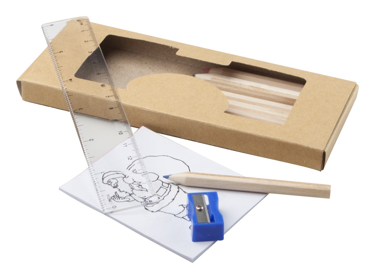 Tekenset met 10 delige potlodenset, 1 puntenslijper, 1 liniaal en kleurboek.