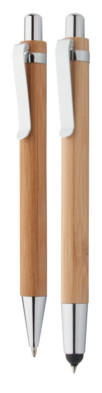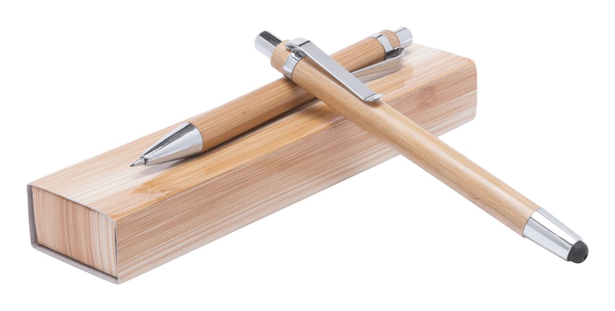 Bamboe pennenset met touchscreen tip en vulpotlood, in geschenkverpakking. Blauw schrijvend en 0,7mm leads.