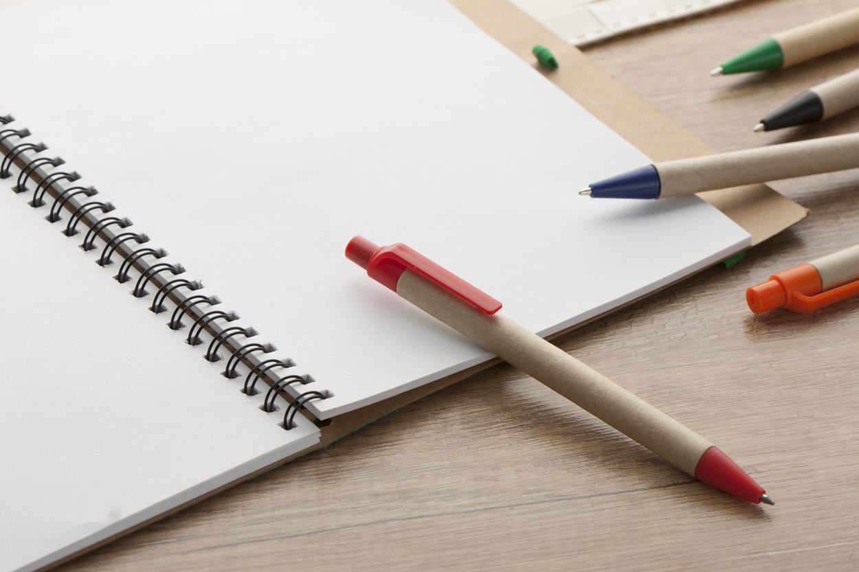 Gerecyclede papieren balpen. Blauw schrijvend.