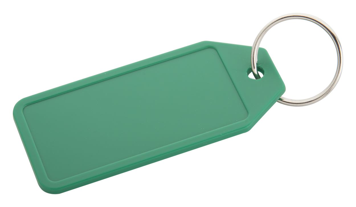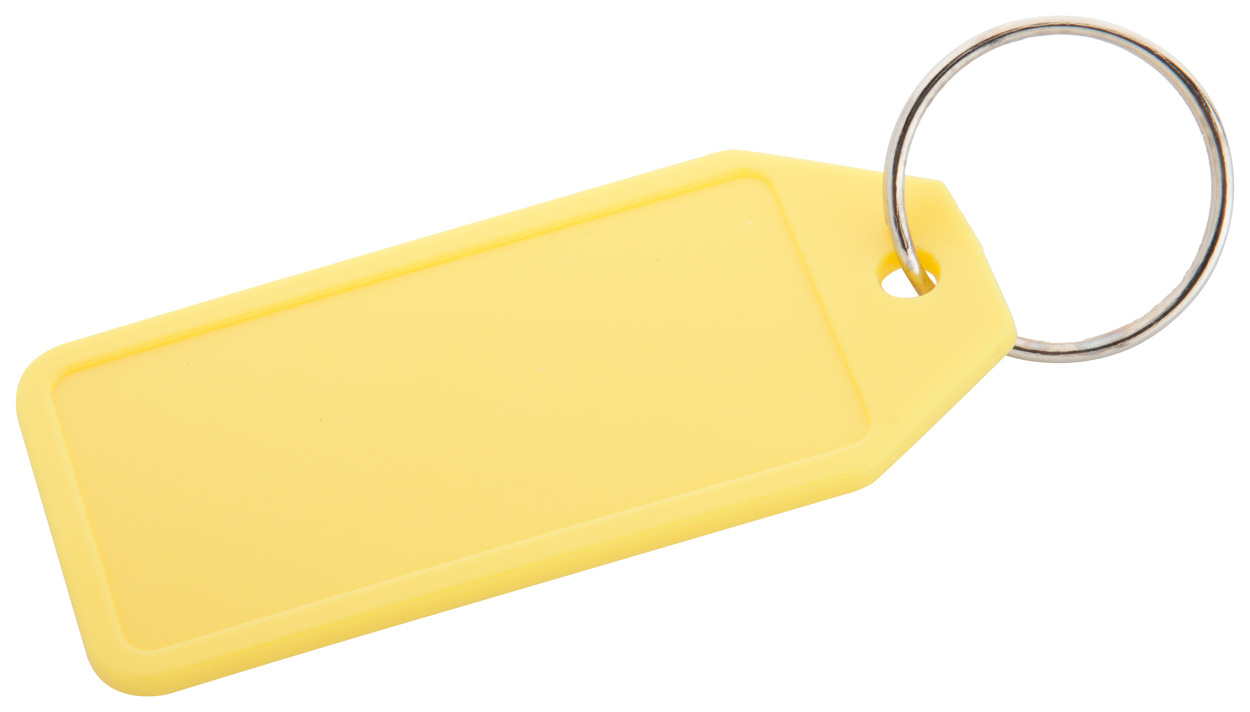 Plastic sleutelhanger met groot bedrukbaar oppervlak.