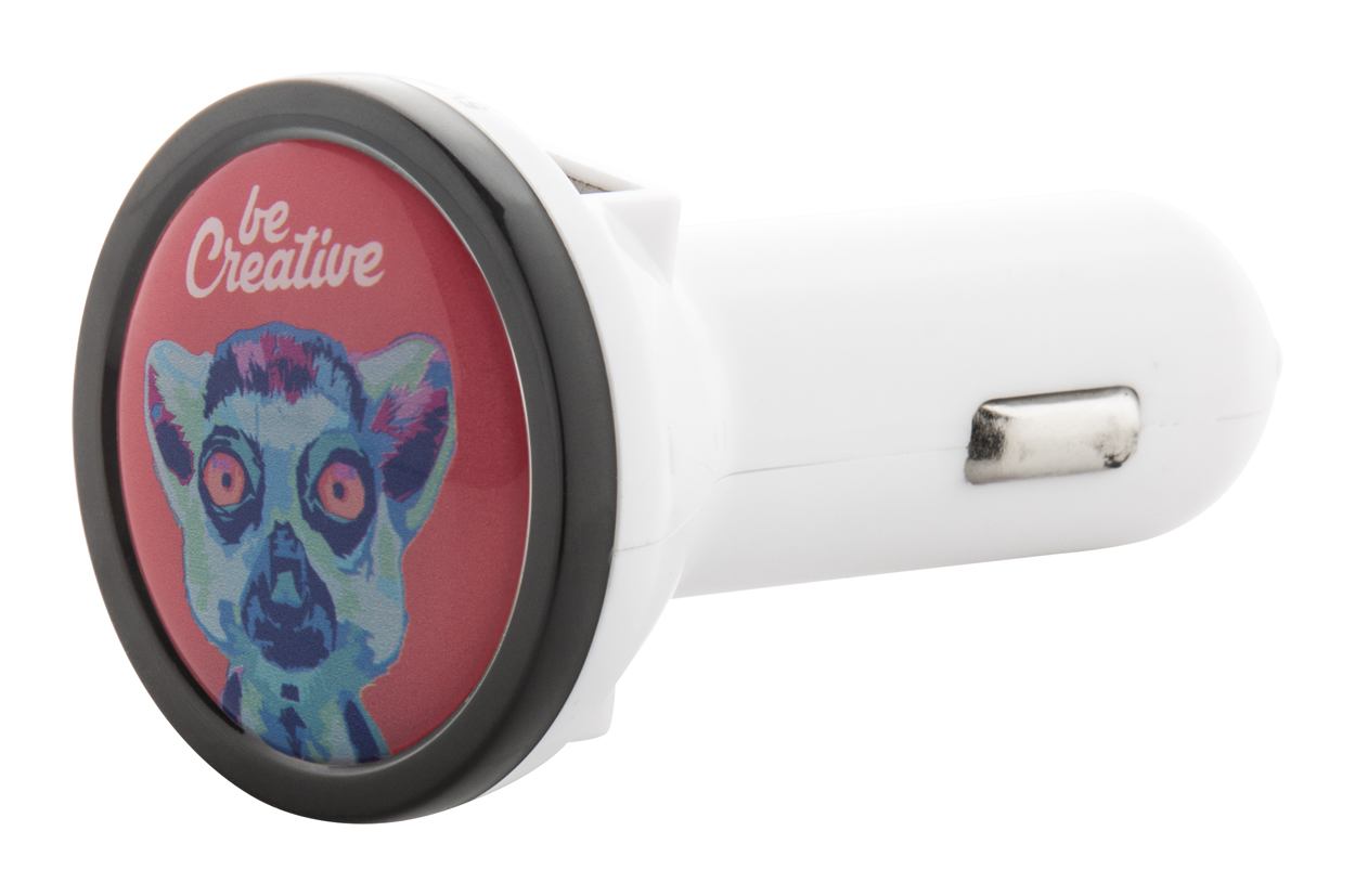 USB lader met twee poorten, max output 1000 mA (poort1) 2100 mA (poort 2). Ideaal voor doming.