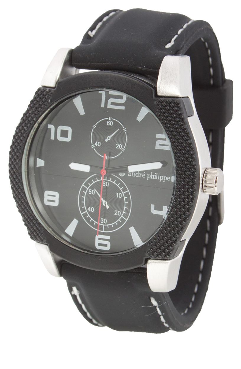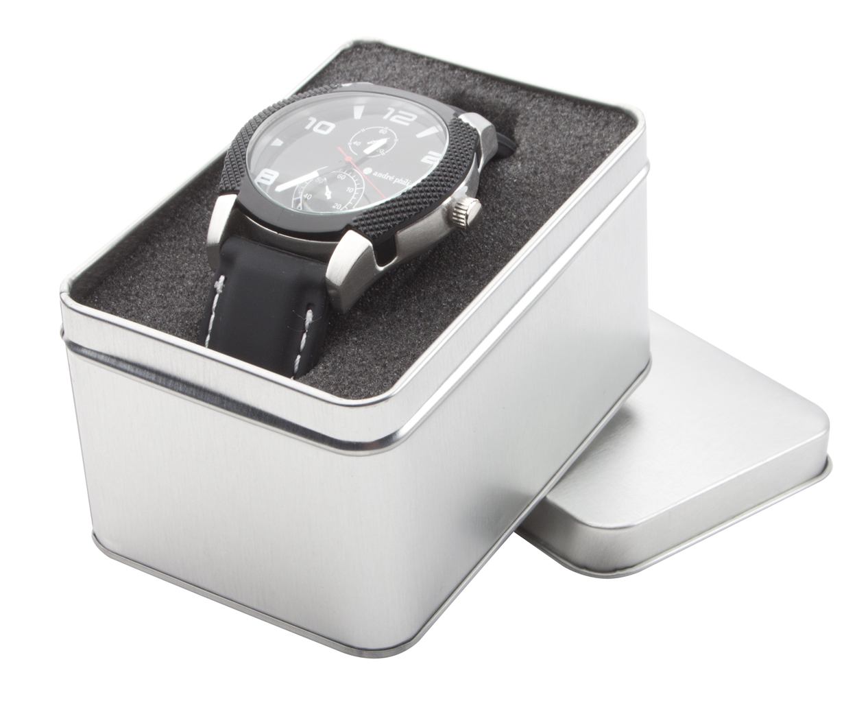 Elegante metalen heren horloge met siliconen band, in metalen geschenkdoos. André Philippe brand product.