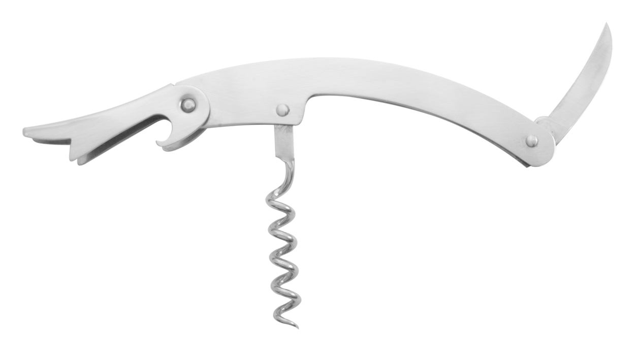 Metalen kelners mes met flesopener, mesje en kurkentrekker.
