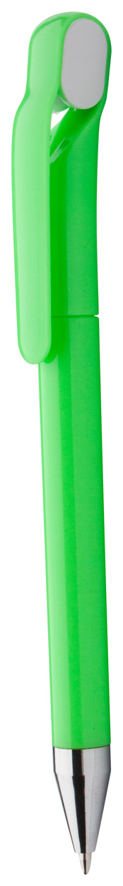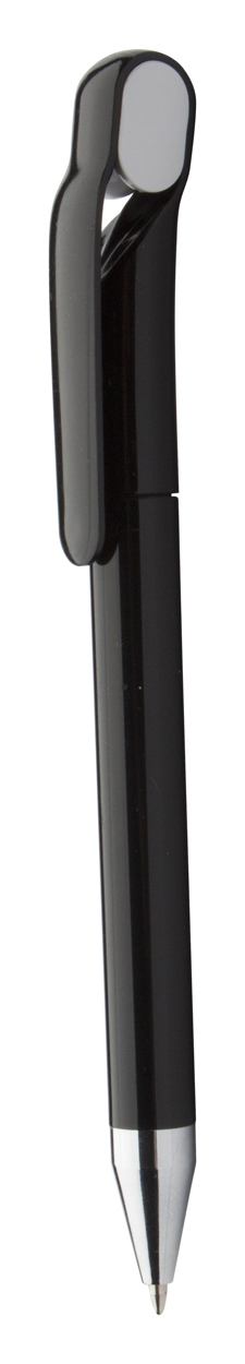Trendy plastic balpen met chromen tip. Blauw schrijvend.