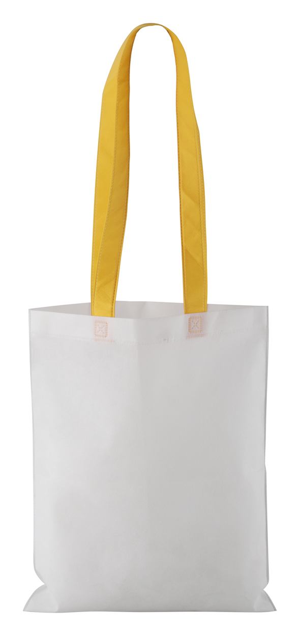 Non-woven boodschappentas met gekleurde handvaten. Maximaal draagvermogen: 3 kg.