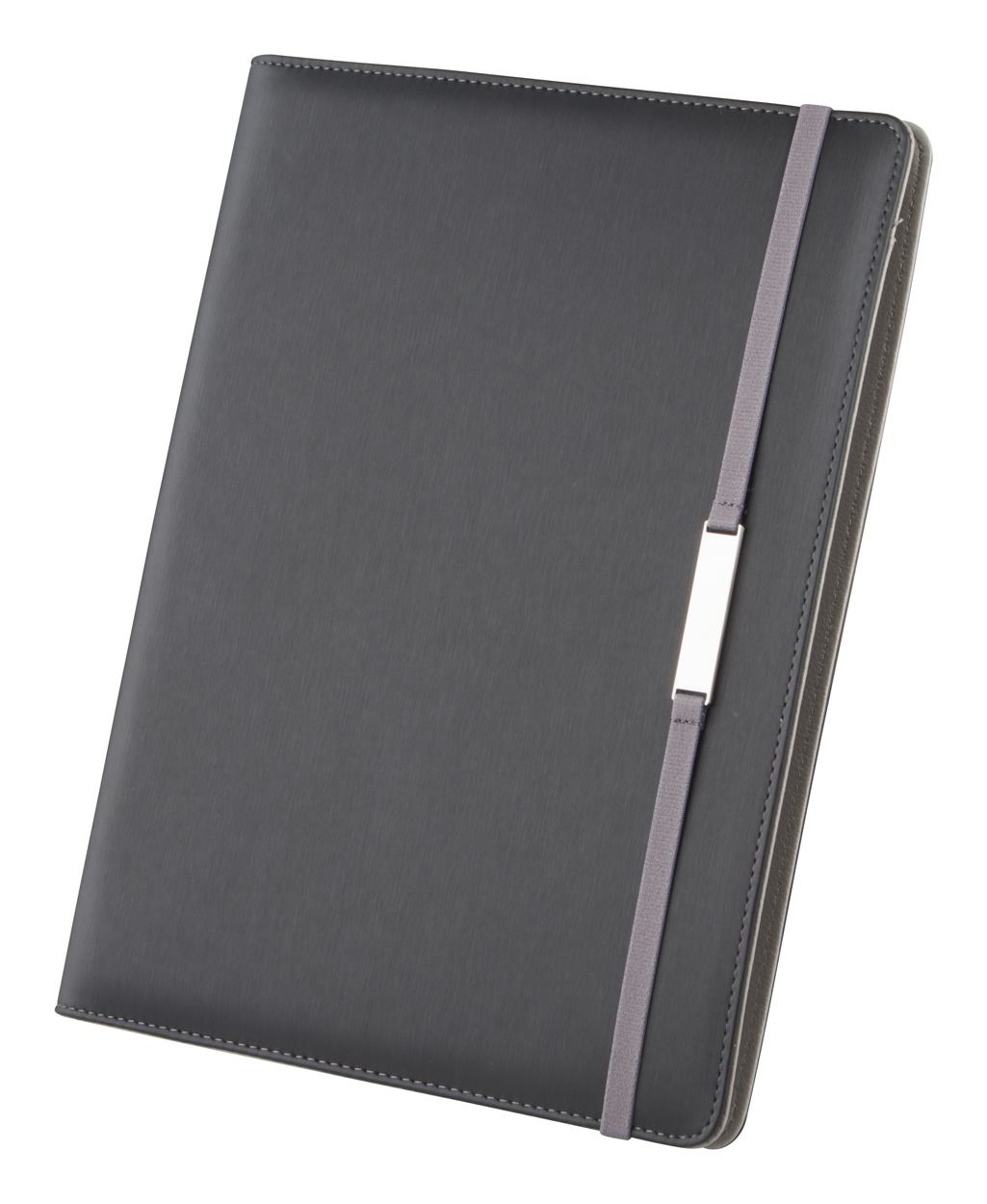 PU lederen documenten map in A4 formaat met iPad® houder. Met 20 gelinieerde bladzijden, pennenhouder en visitekaarthouder.