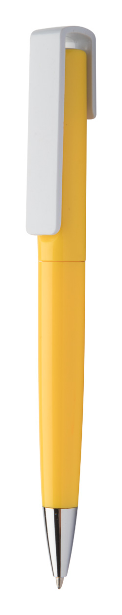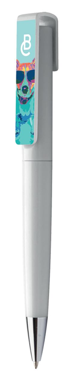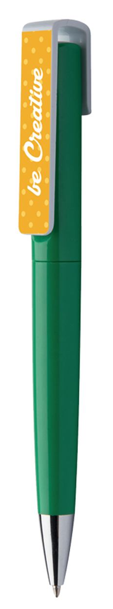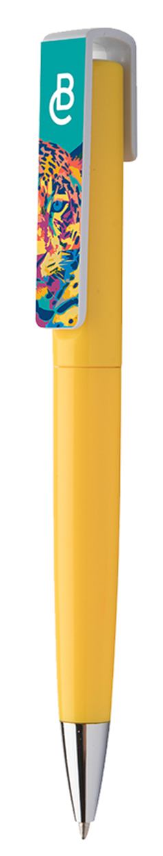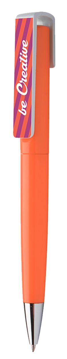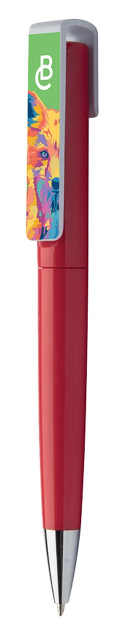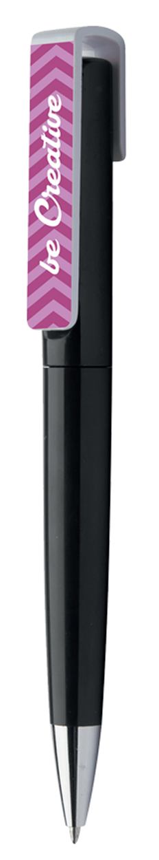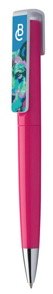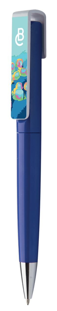 Plastic draai-balpen met grote, te bedrukken clip. Blauw schrijvend.