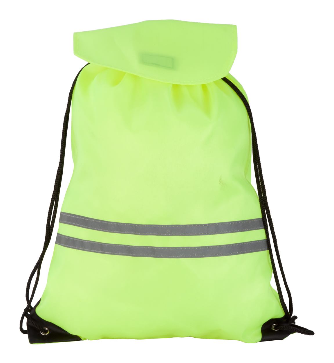 Rugzak met koordjes. Extra zichtbaar door reflecterende strippen.