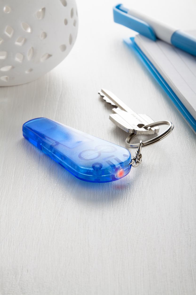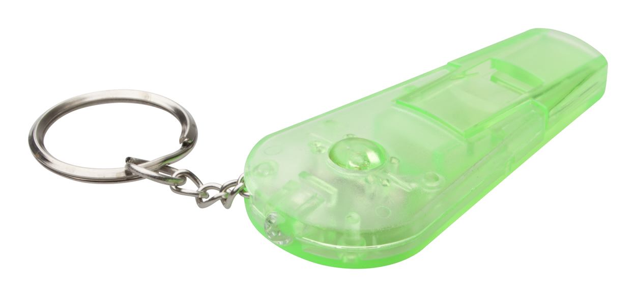 Transparant plastic sleutelhanger met fluitje en led lampje. Inclusief batterij.