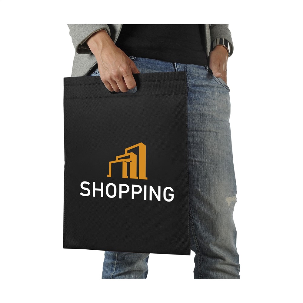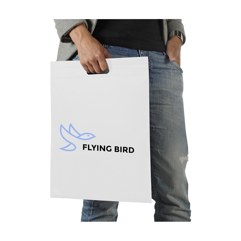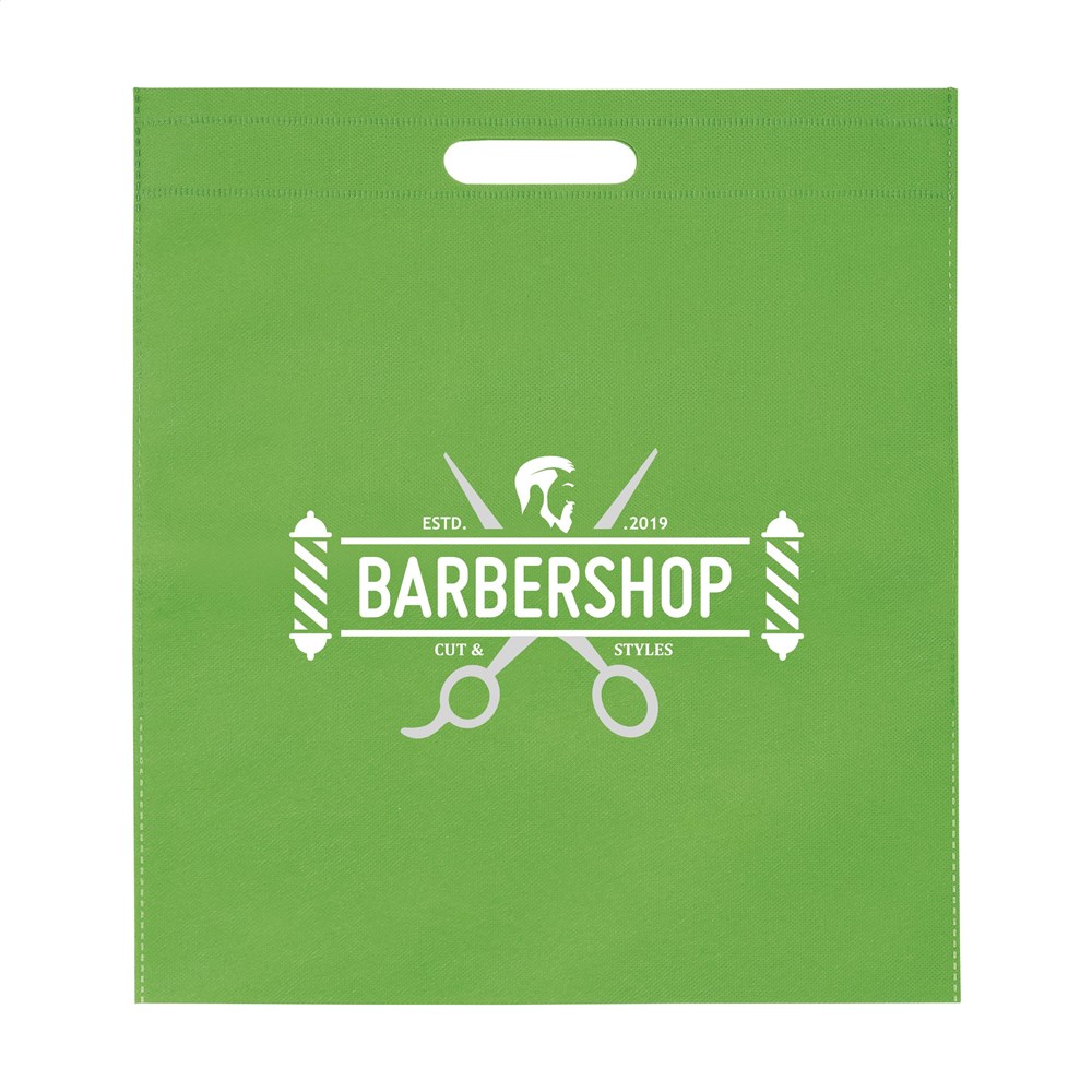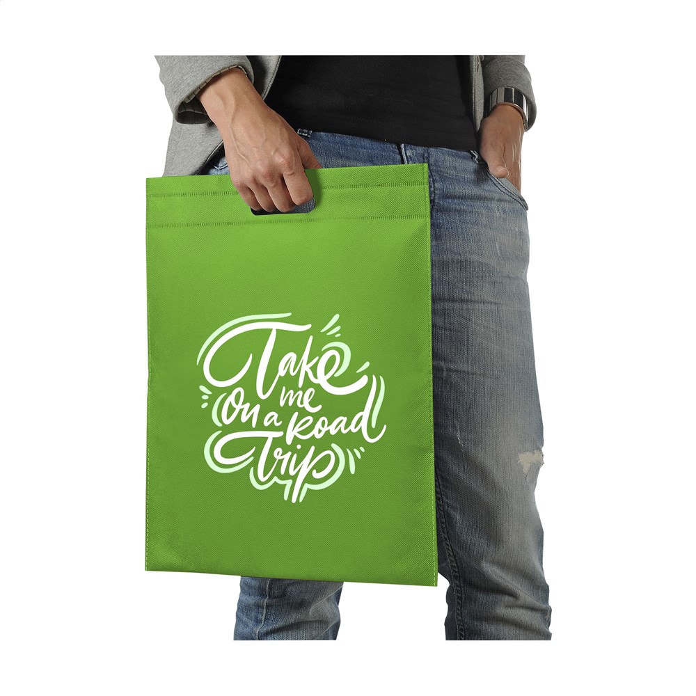 Promotietas van nonwoven materiaal (80 g/m²): een superlichte en sterke kunstvezelstof. Met uitgestanste handgreep.