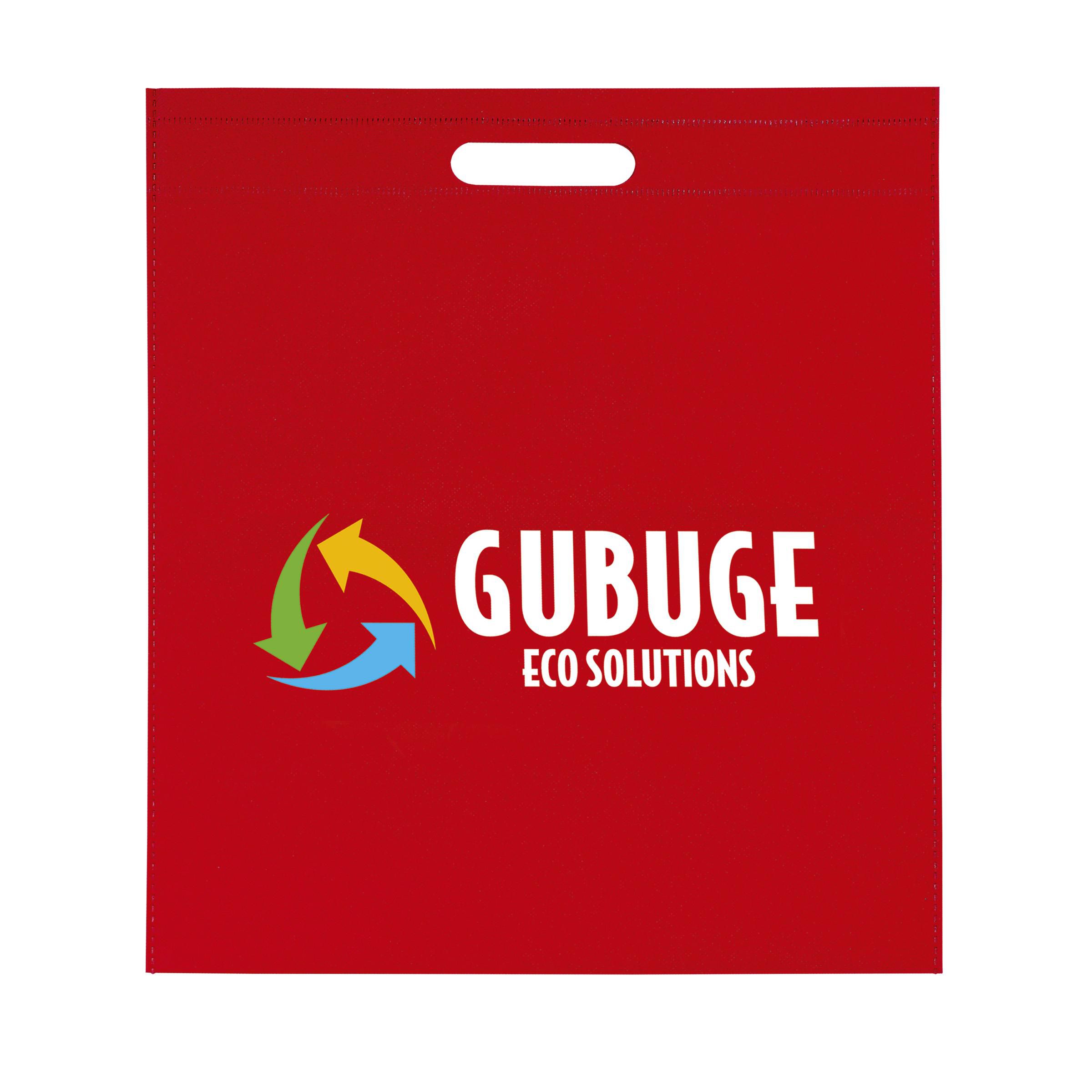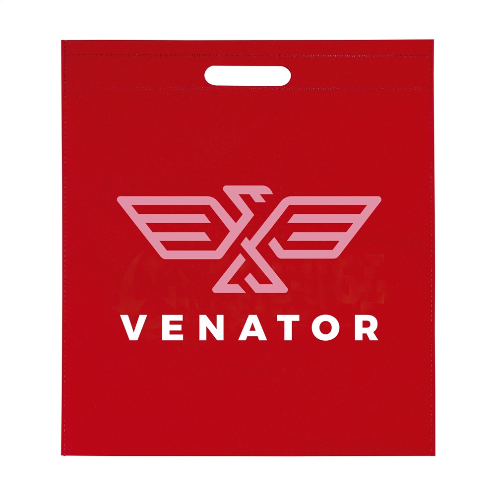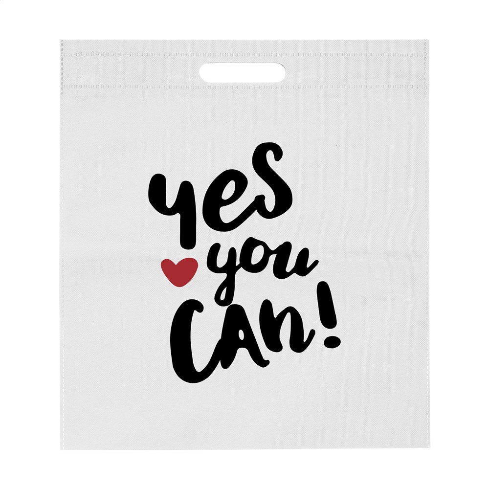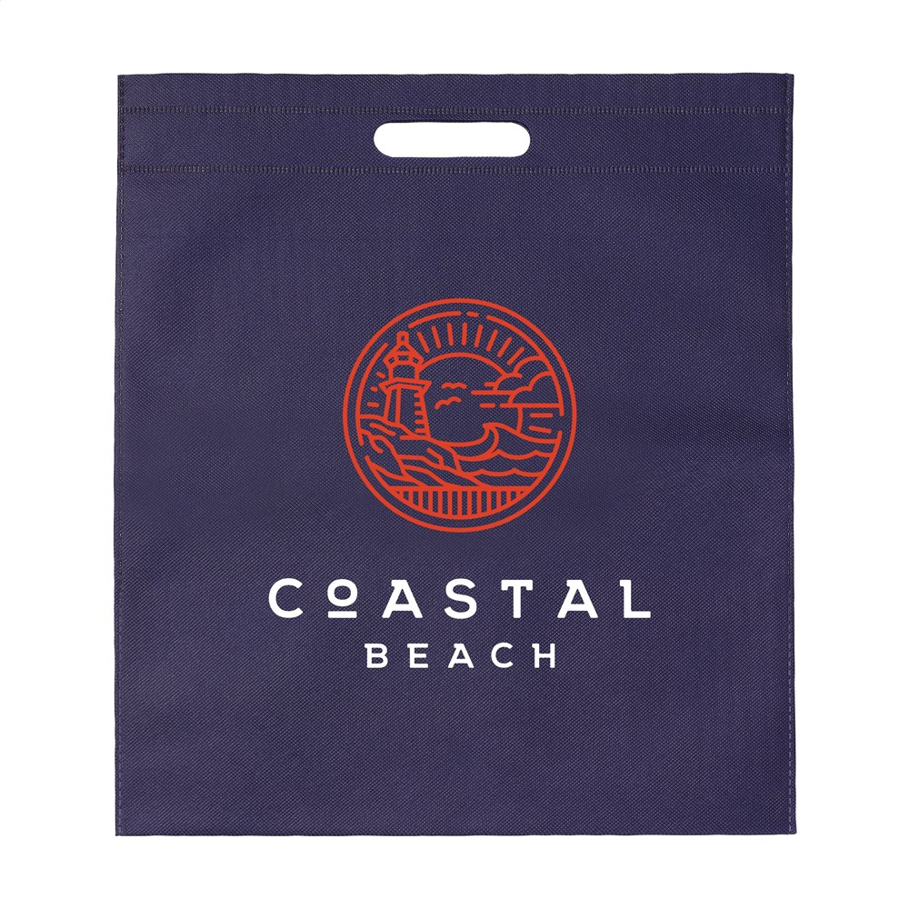 Promotietas van nonwoven materiaal (80 g/m²): een superlichte en sterke kunstvezelstof. Met uitgestanste handgreep.