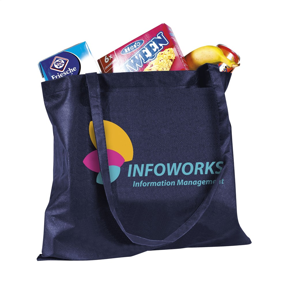 Winkeltas met lange hengsels van nonwoven materiaal (80 g/m²): een superlichte en sterke kunstvezelstof.